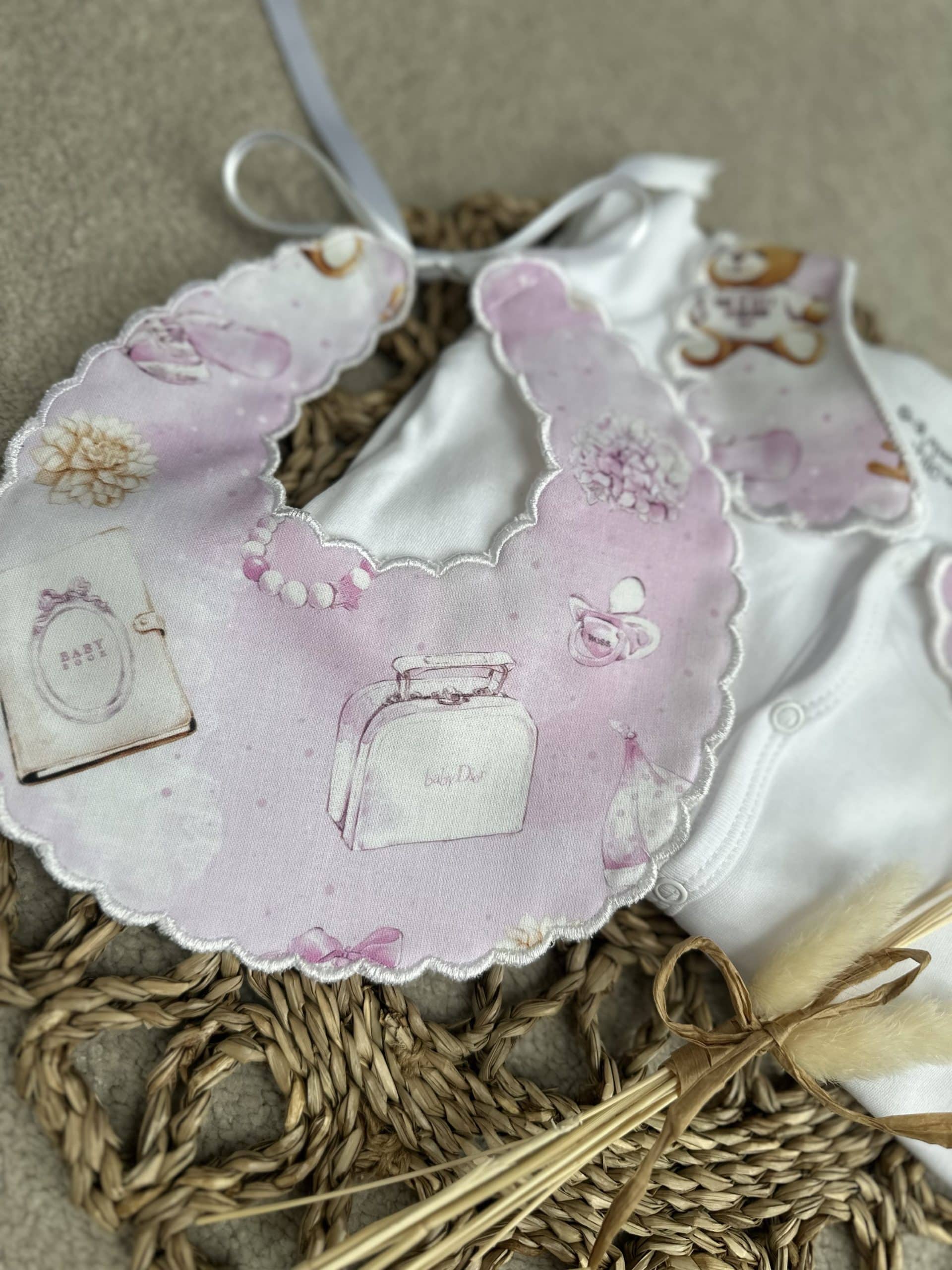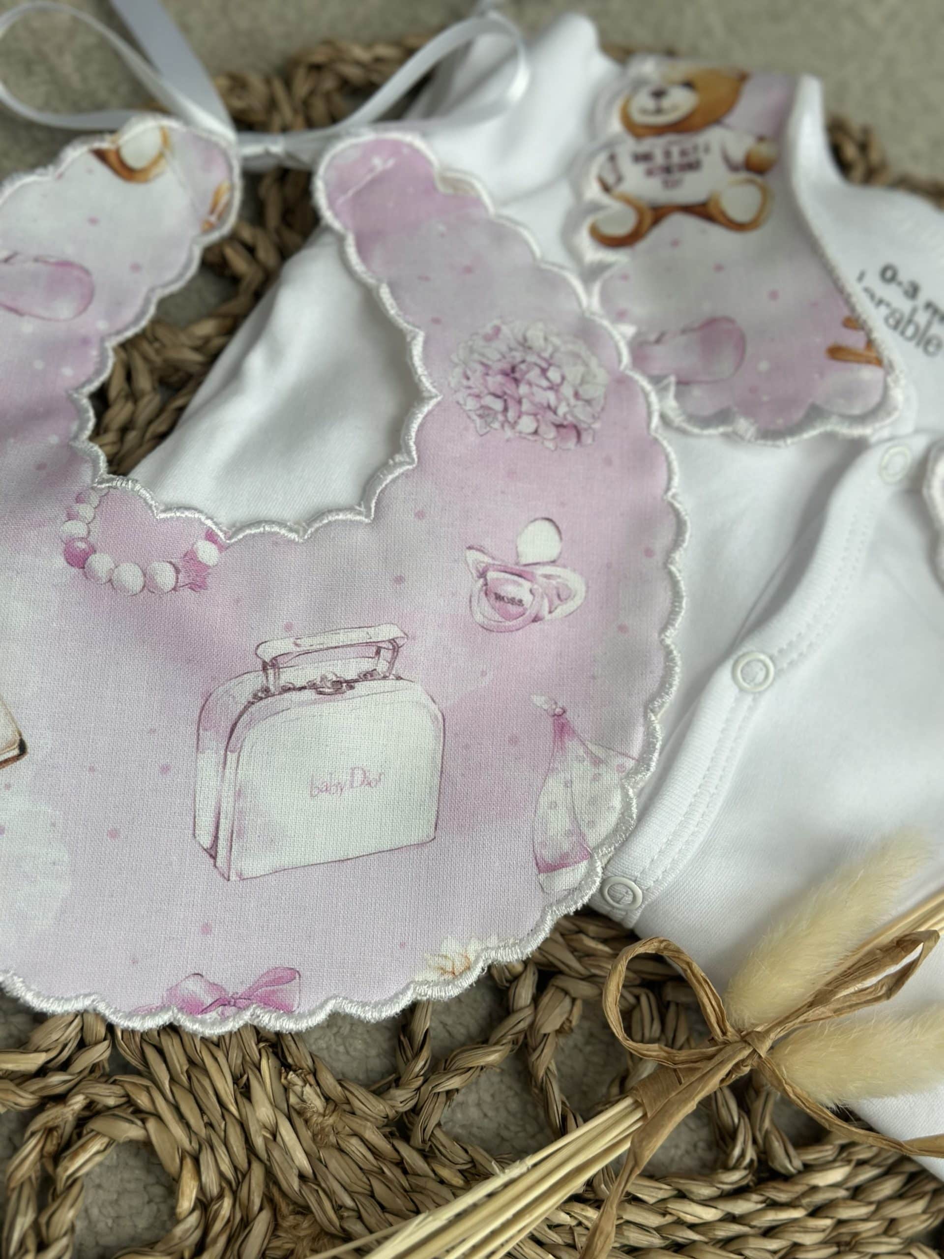 Girls Pink Dior Handmade Sleepsuit And Bib