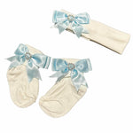 Baby Girls White Ankle Socks with a beautiful bow & Matching Headband 100% Cotton Made in the uk.