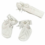 Soft Touch Girls White Ankle Socks & Headband Set - White Bow