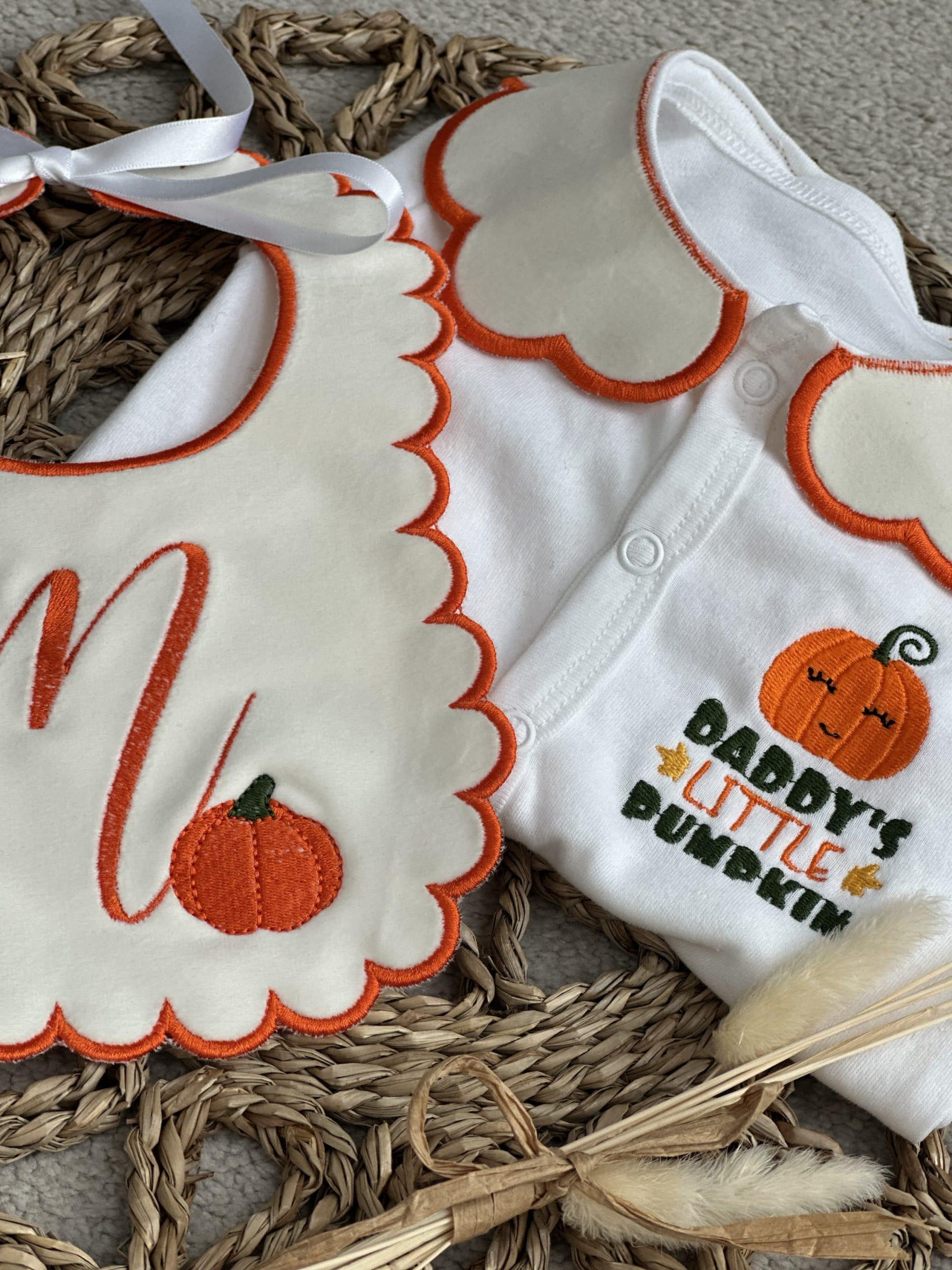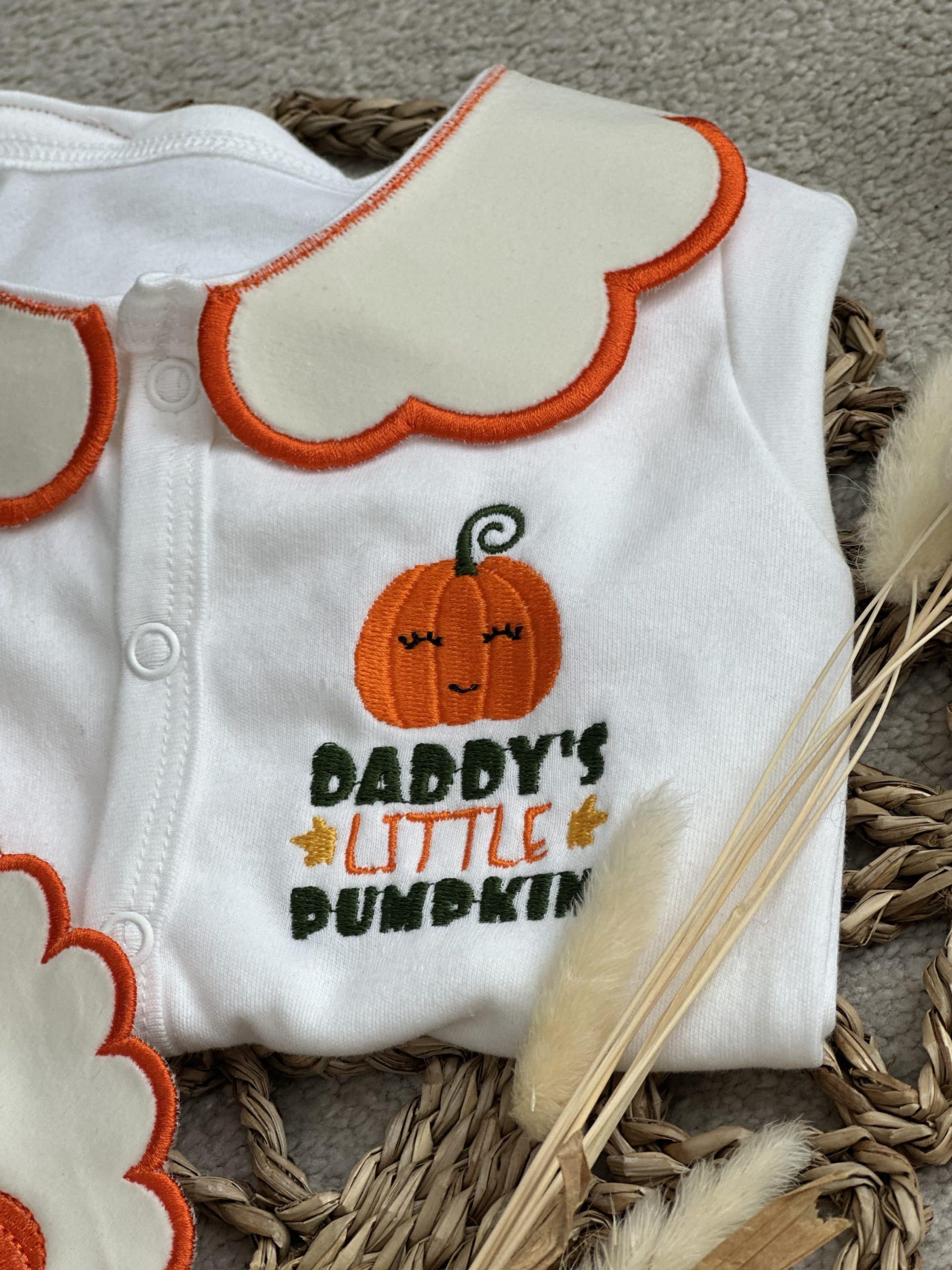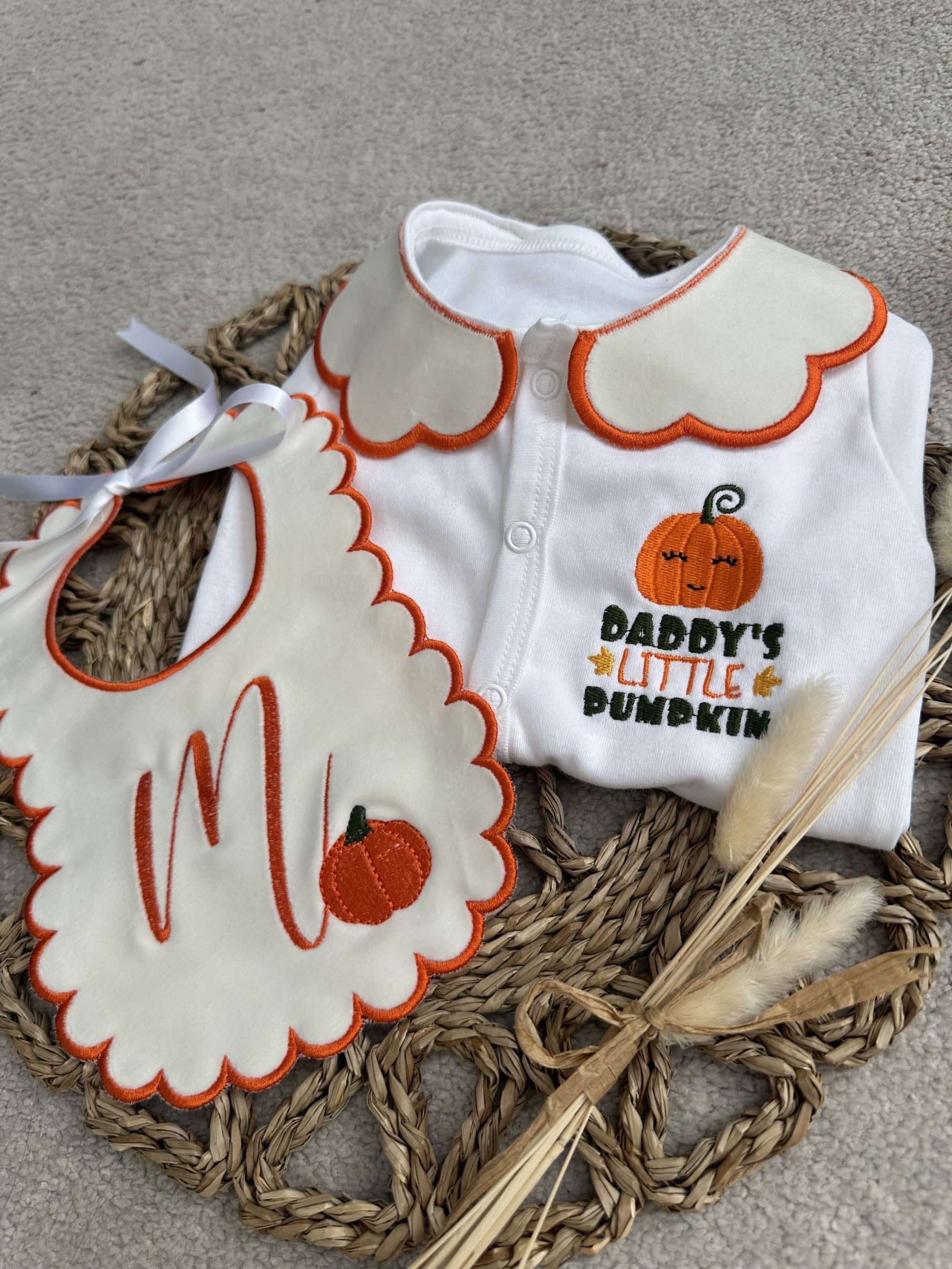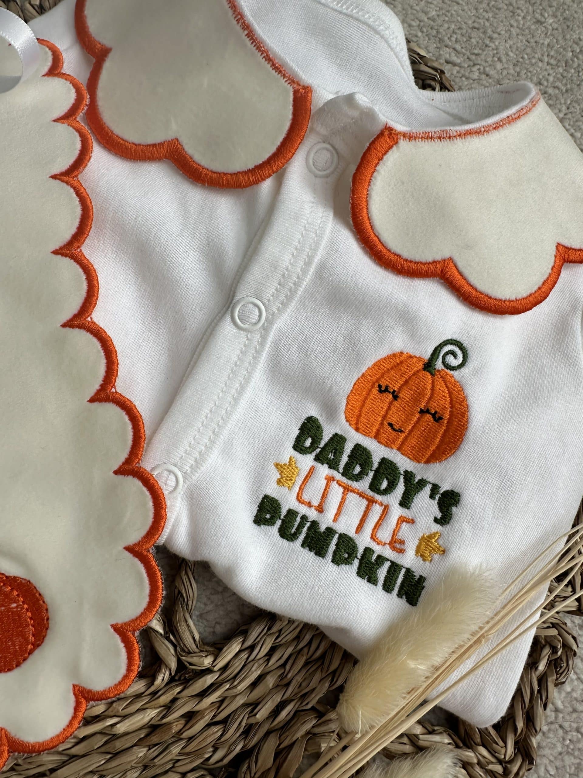 Halloween Pumpkin Handmade Sleepsuit And Bib