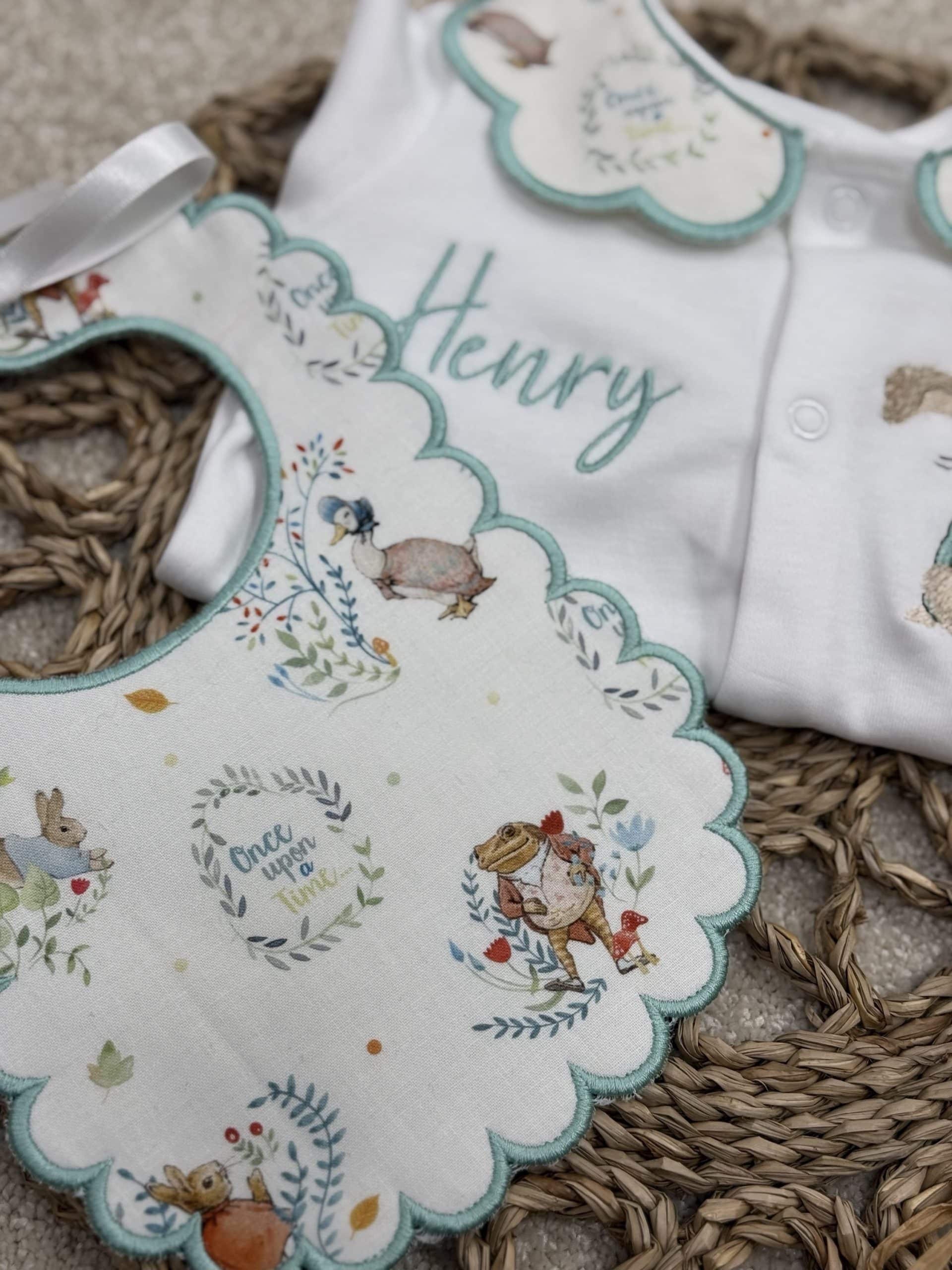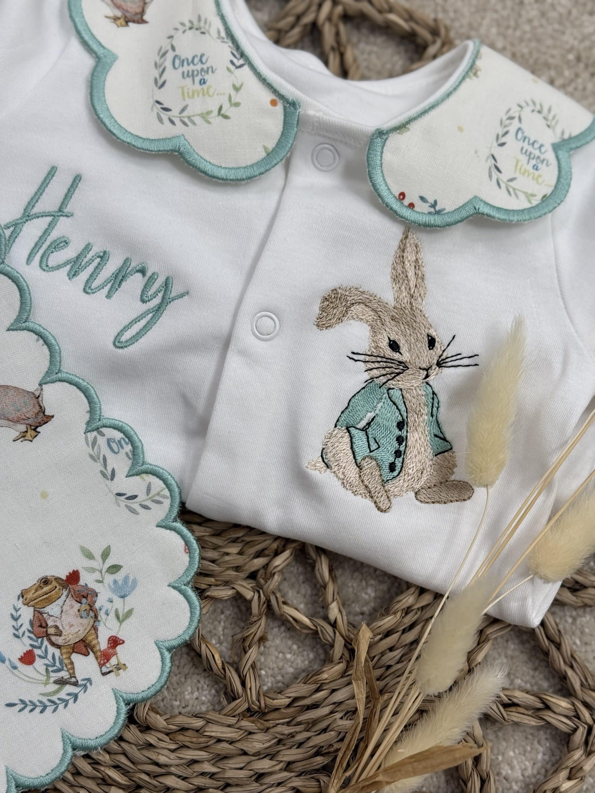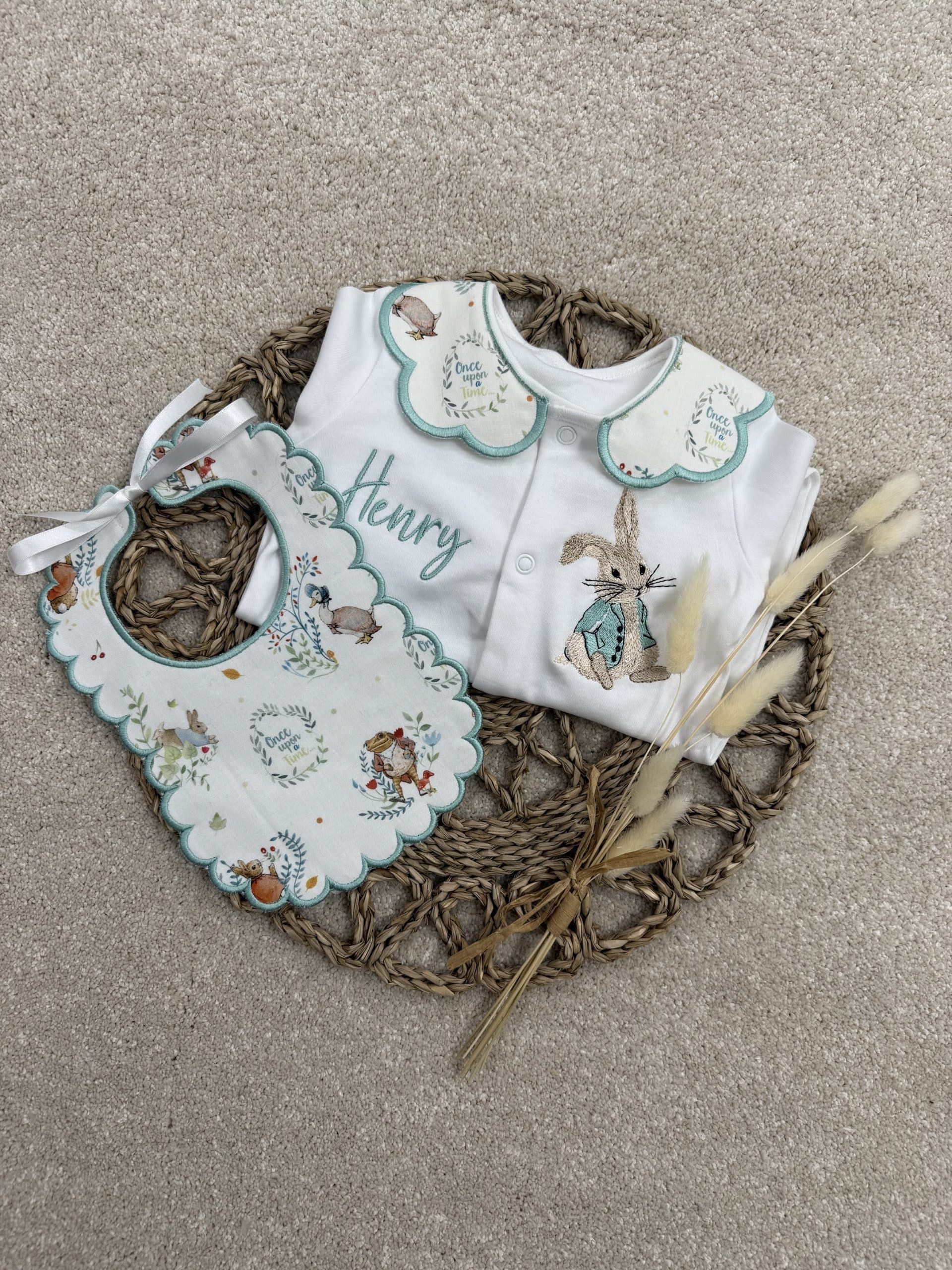 Unisex Peter Rabbit Handmade Sleepsuit And Bib