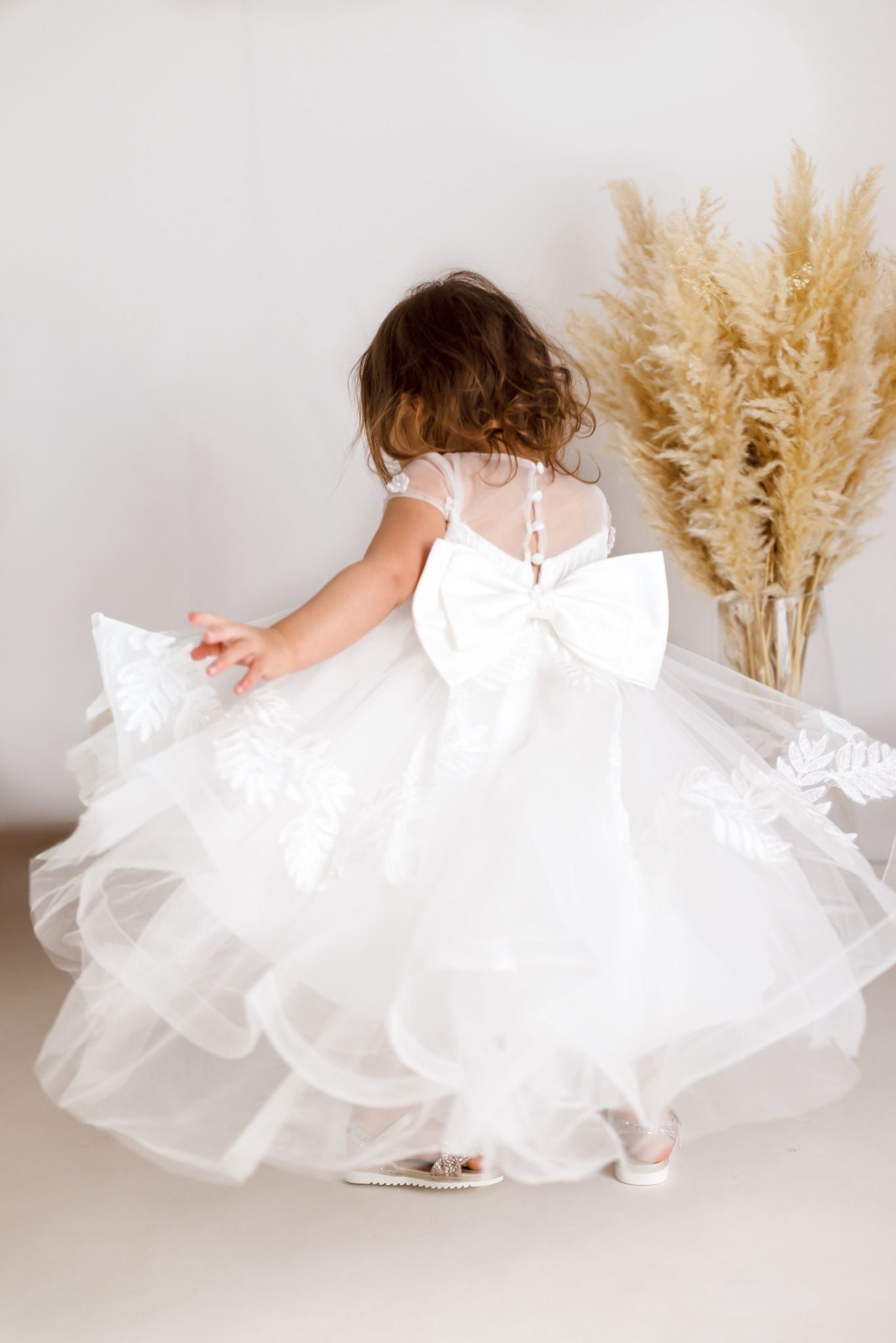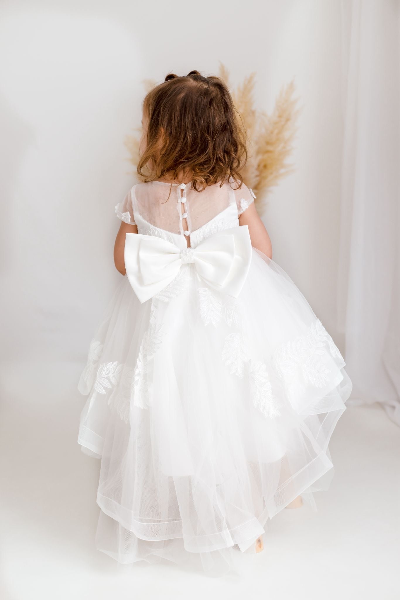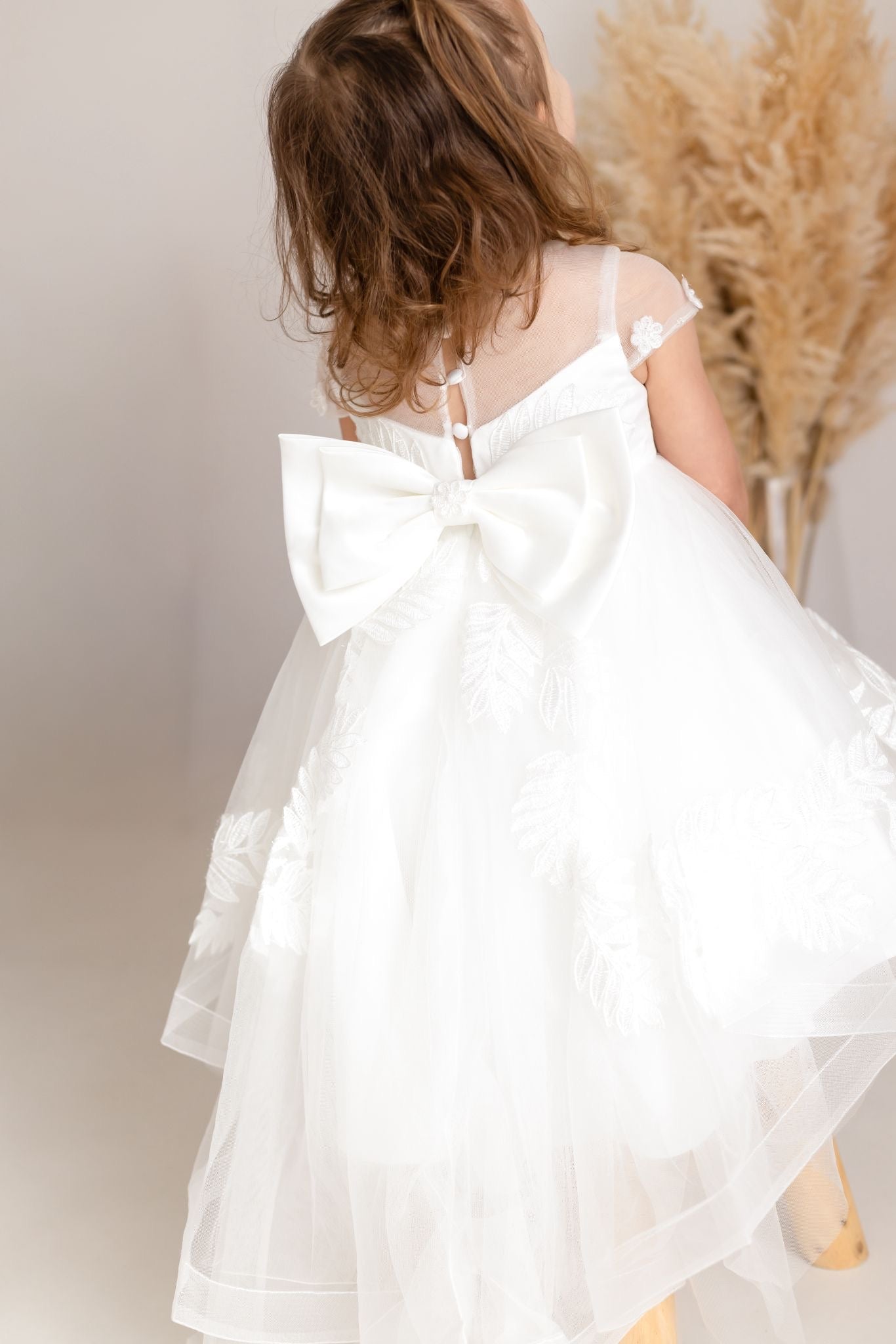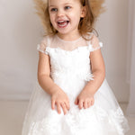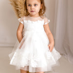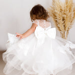Baby Girls Ivory Luxury Tulle Christening Dress with Statement Bow