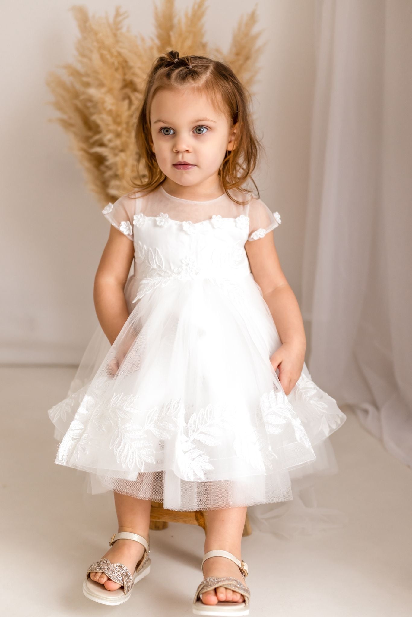 These dresses are specially ordered in for you. They can take upto 14 days , all christening wear is NON REFUNDABLE Make her special day unforgettable with our Ivory Luxury Christening Dress, designed for the most precious moments. Crafted with layers of soft flowing tulle and delicate embroidered detailing, this gown is the perfect blend of elegance and innocence.