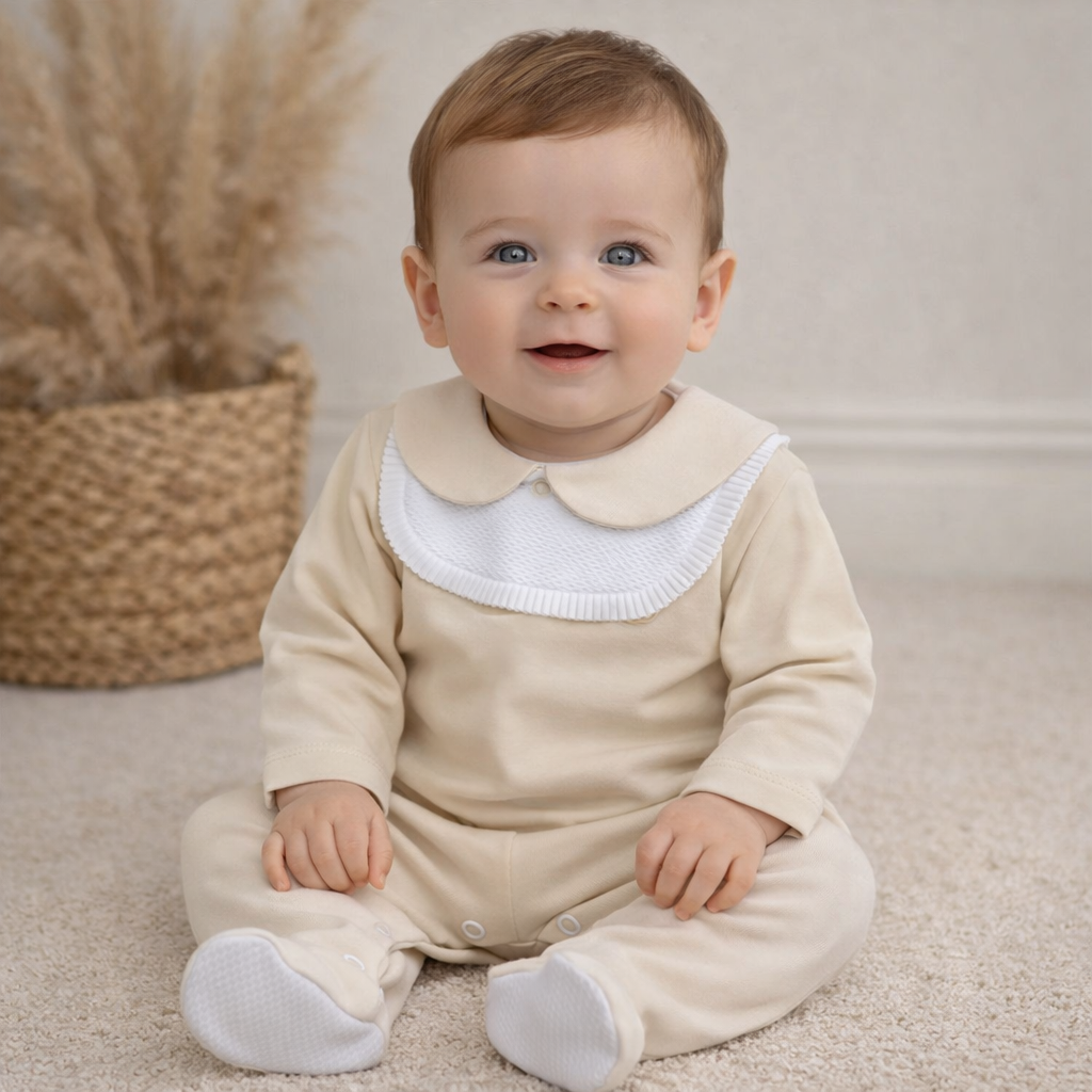 Babidu Boys White Cotton long Sleeved Blue Edge Bodysuit