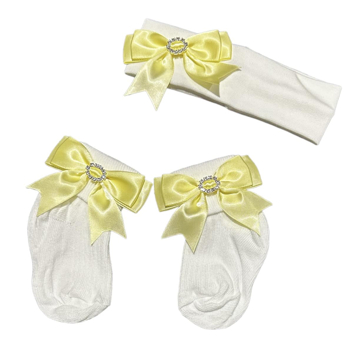 Soft Touch Girls White Ankle Socks & Headband Set - Lemon