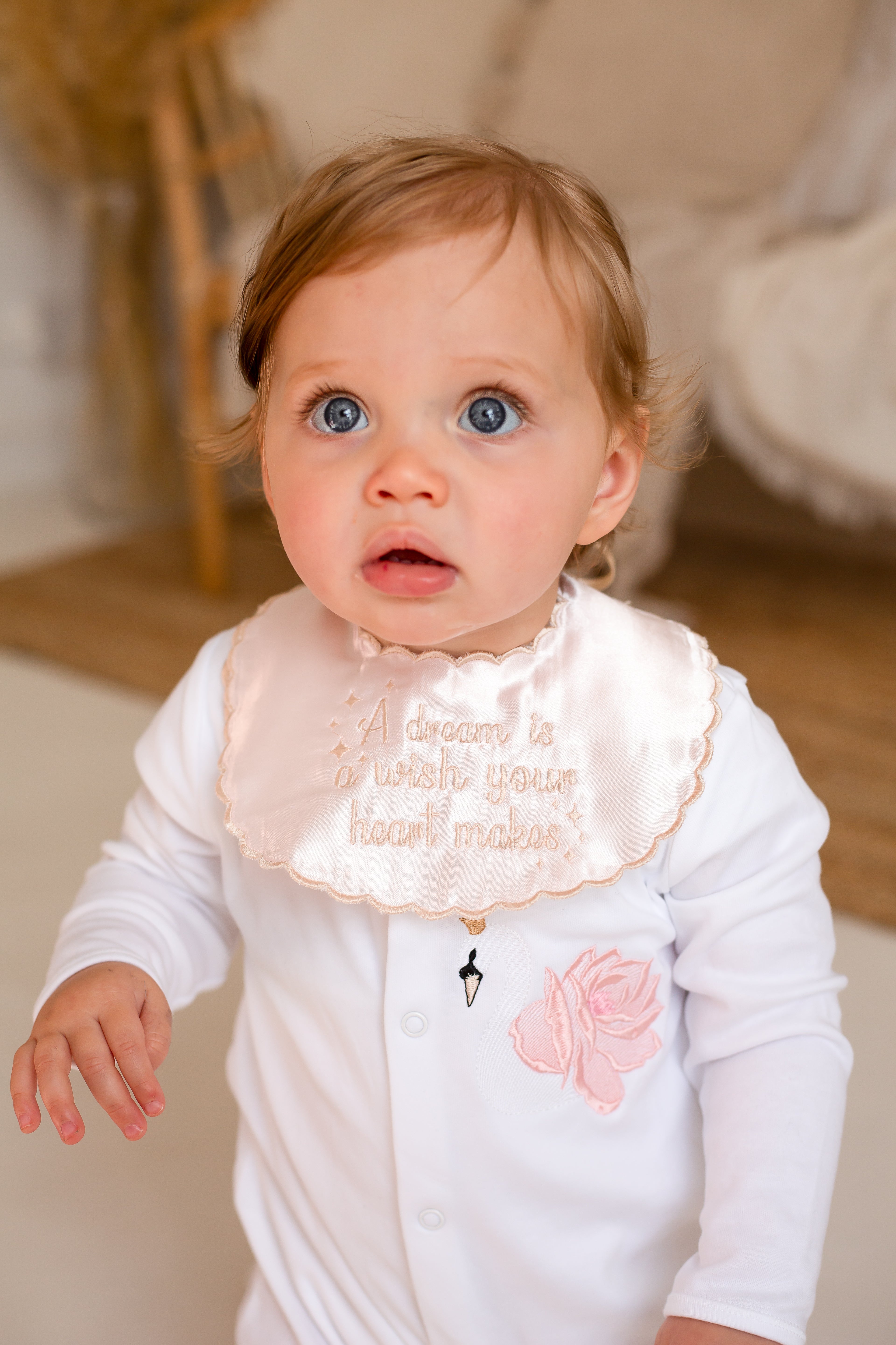 Baby Girls Pink Swan Handmade Baby grow and Bib