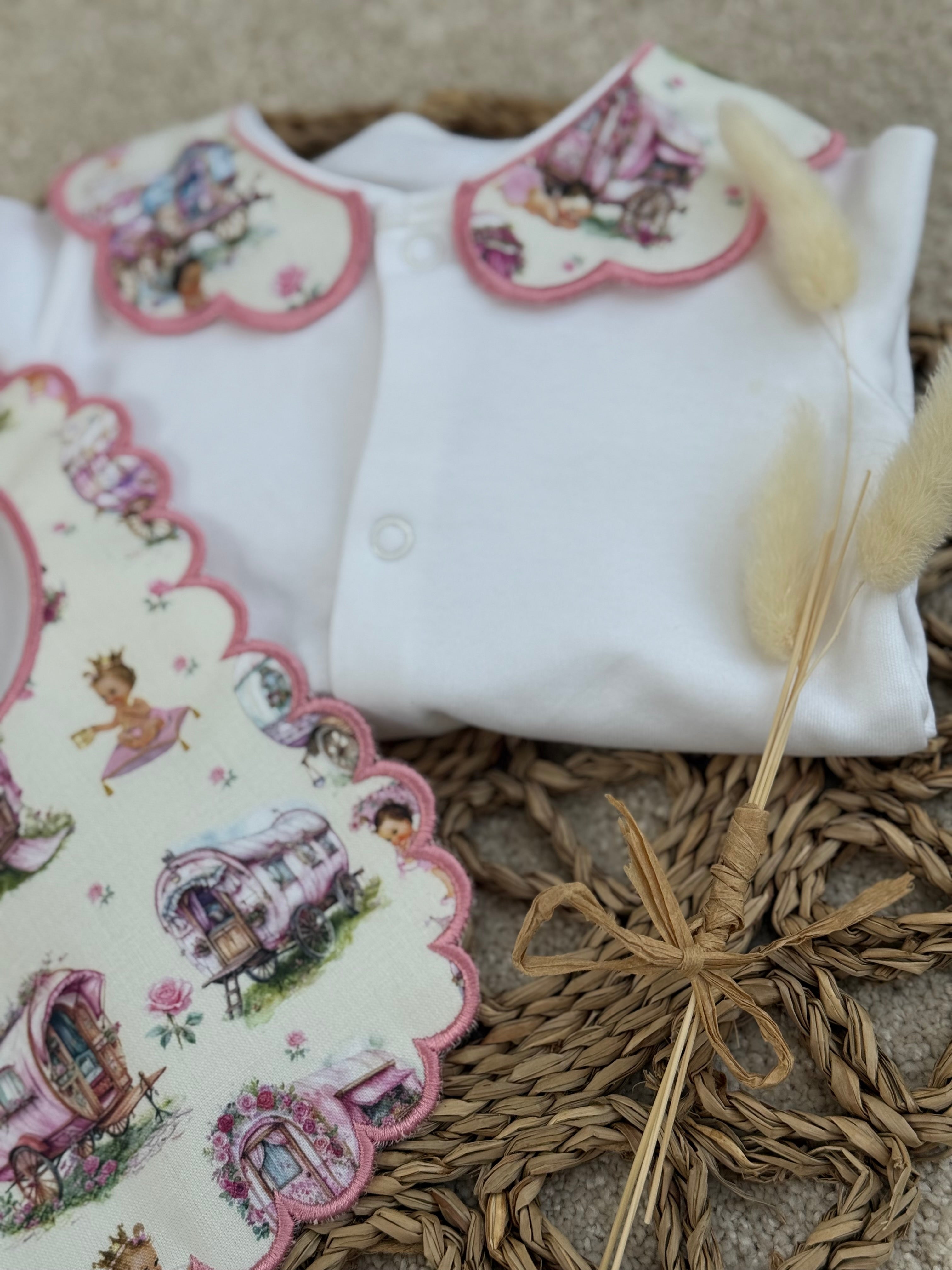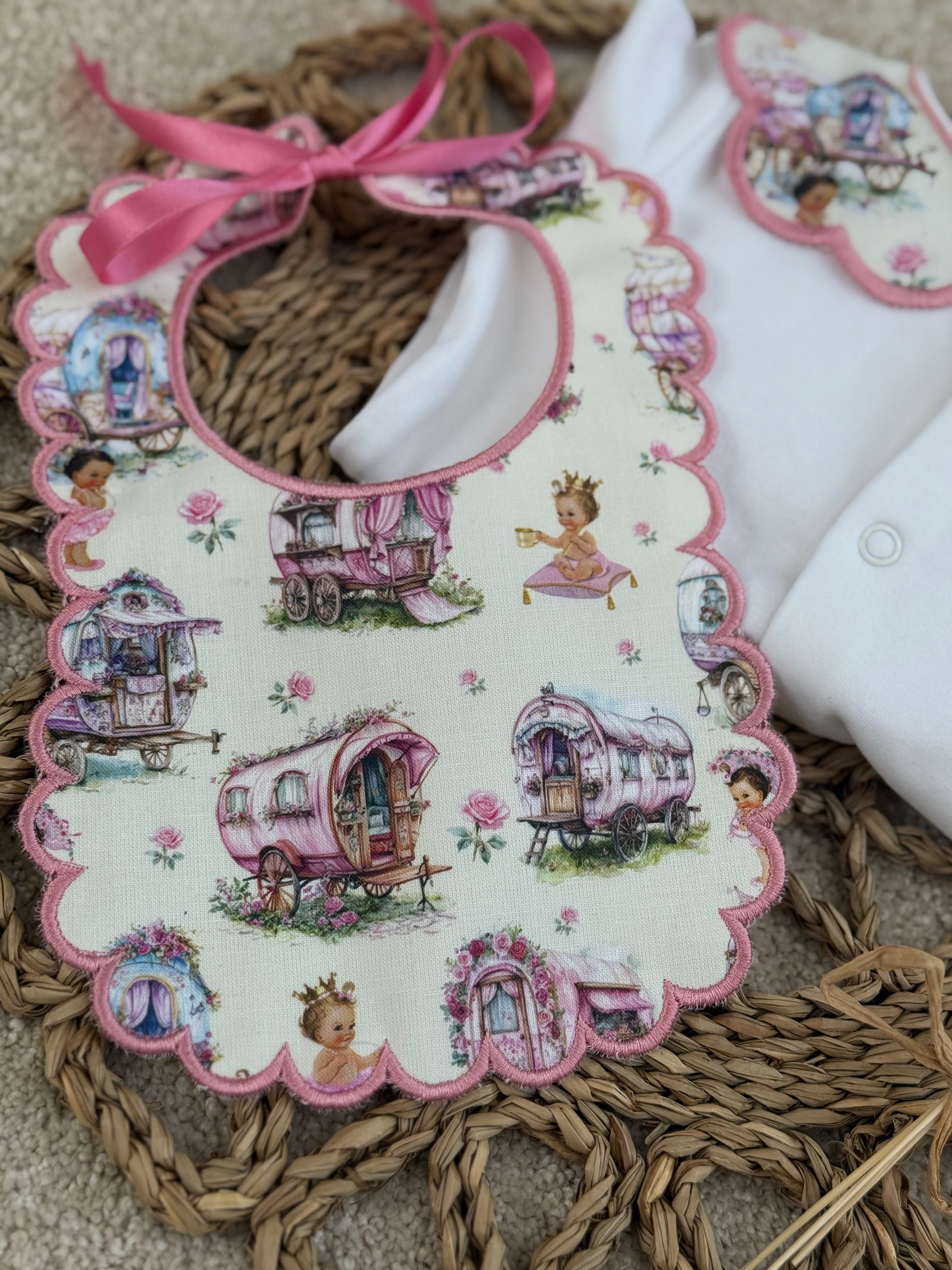 Baby Girls Pink Vardo Handmade Baby grow and Bib