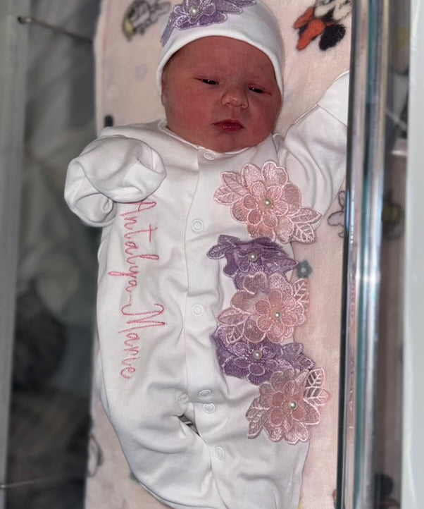 Baby Girls Lilac and Pink Flower Baby Grow With Hat