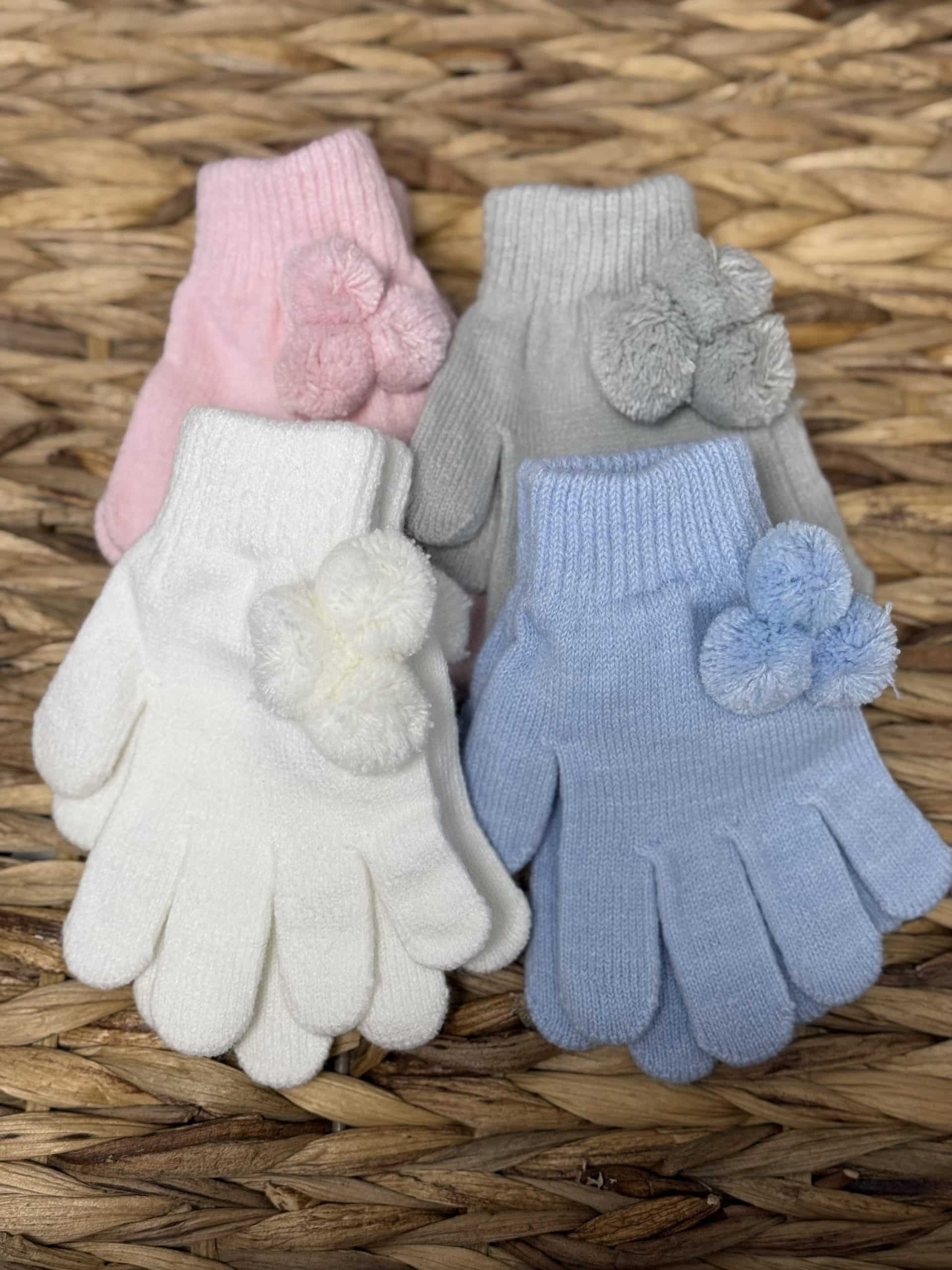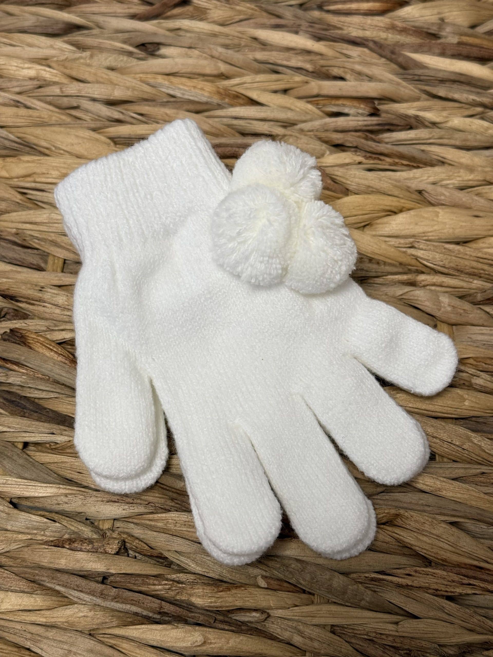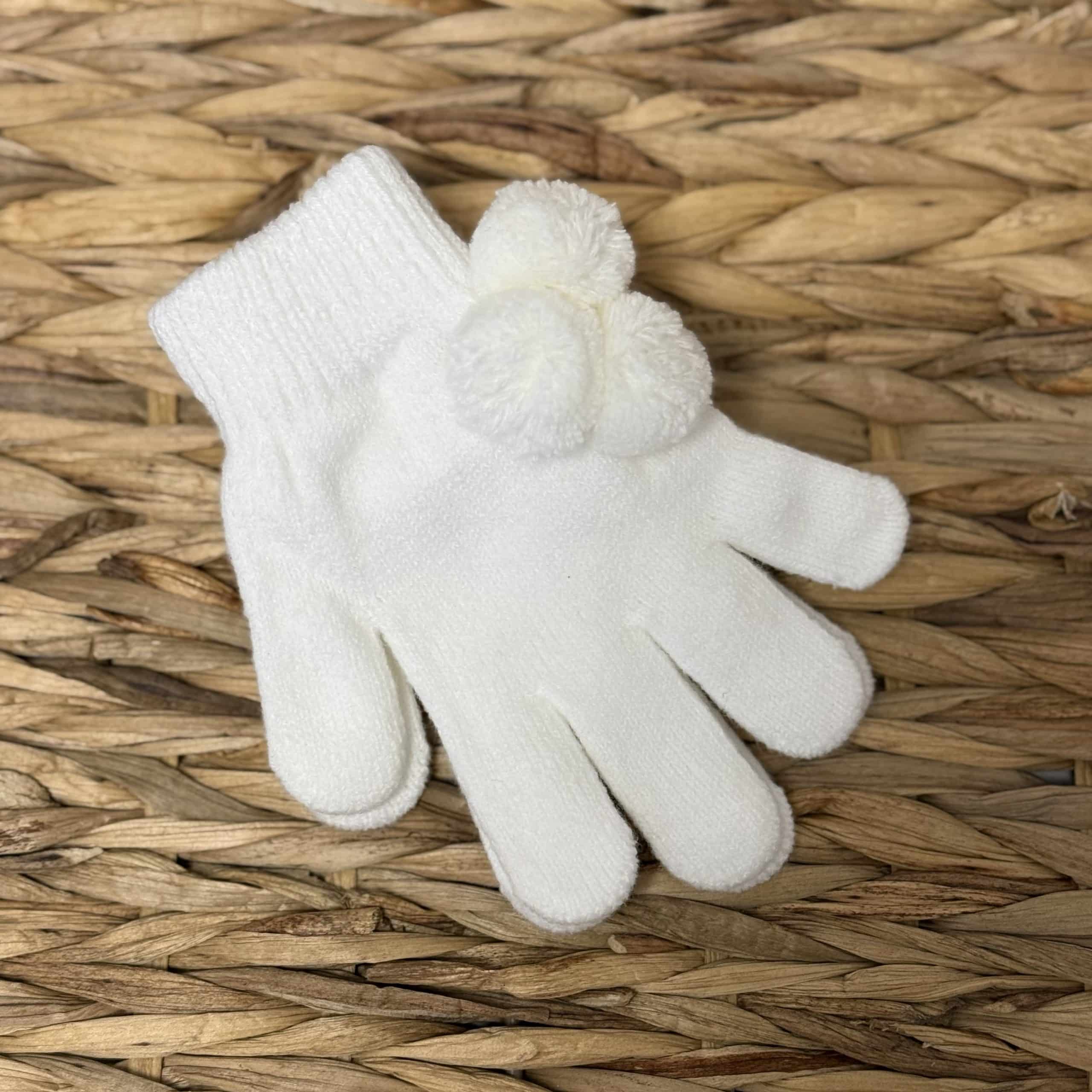 Kids One Size Magic Gloves With Poms - Off White