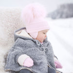 A Pink knitted scarf for younger boys and girls by Sätila of Sweden. This sweet scarf in made from soft, knitted acrylic and has cute pom-pom trims.