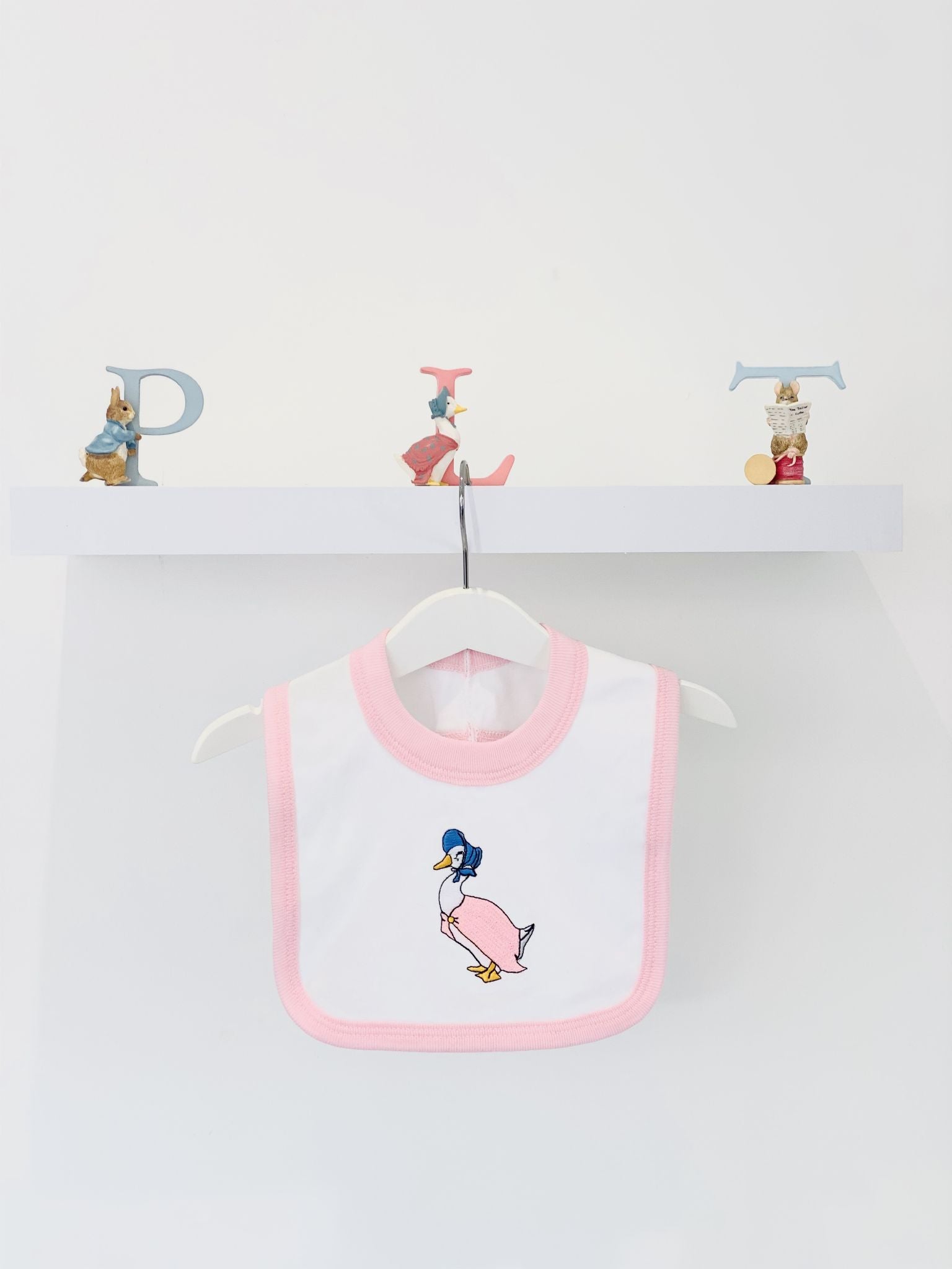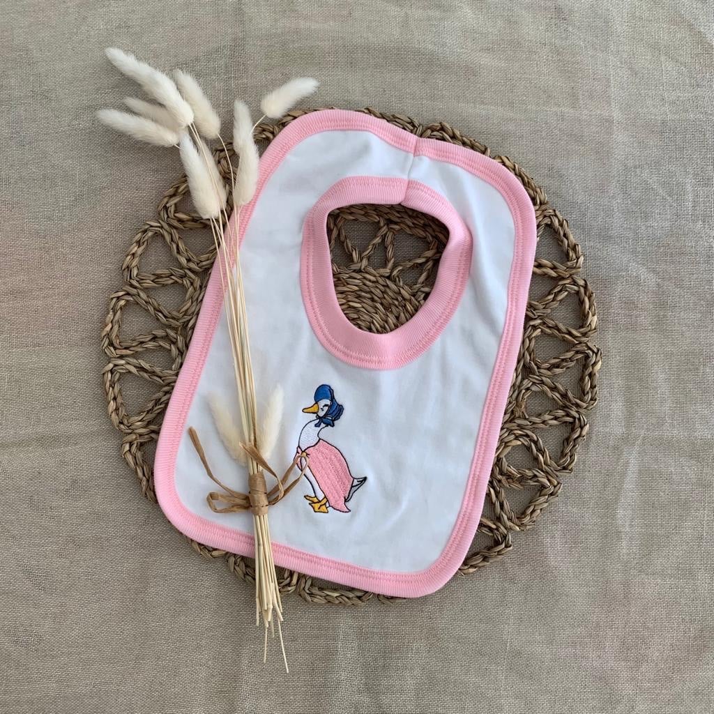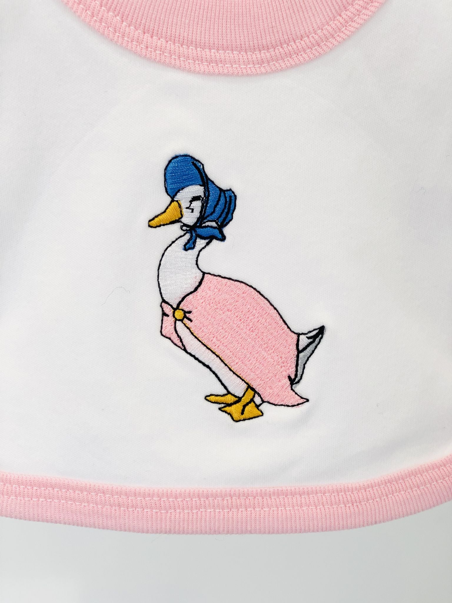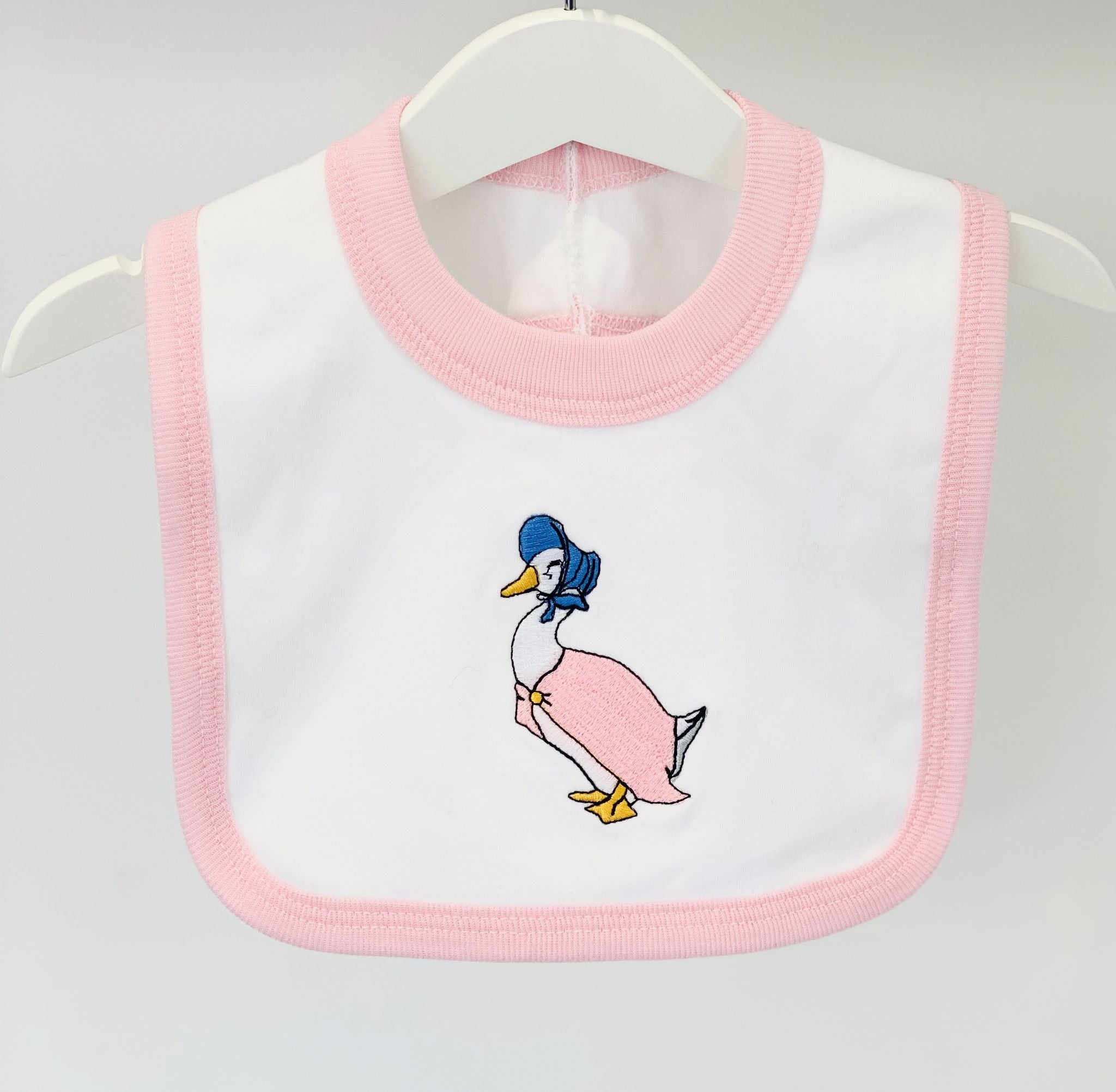 Jemima Puddle Duck Pink White Bib