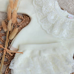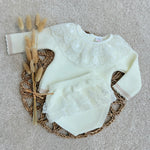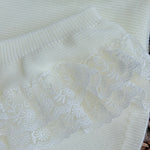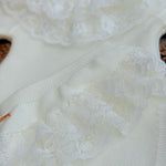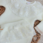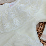 Dress your little one in timeless elegance with this beautiful Spanish baby outfit featuring delicate lace detailing for a truly luxurious look. This two-piece set includes a long-sleeved knitted top adorned with a statement lace collar and matching lace trim on the coordinated shorts. Perfect for special occasions, christenings, or simply adding charm to everyday wear.