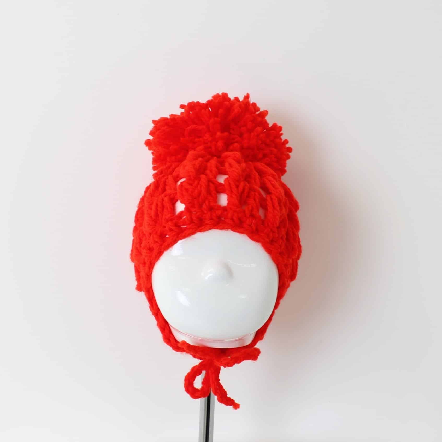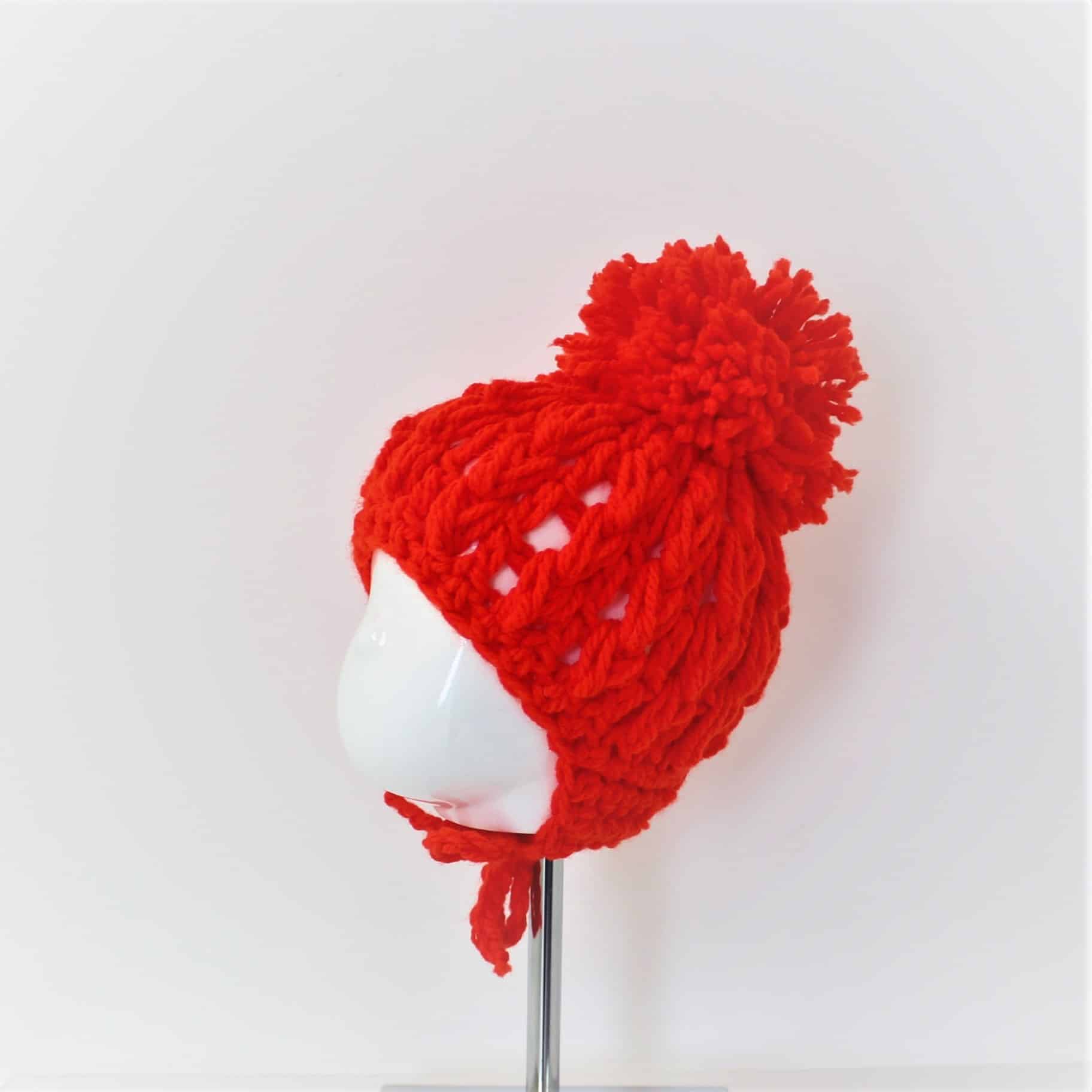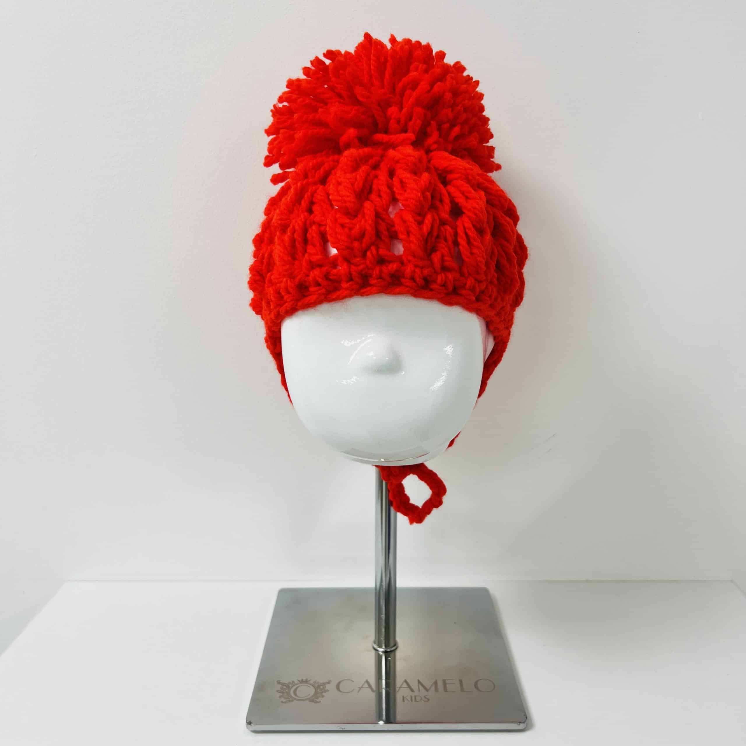 Perfect Little Thing Aran Wool Knitted Pom Hat - Red