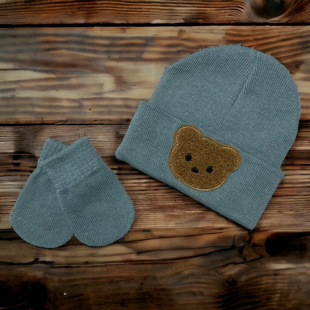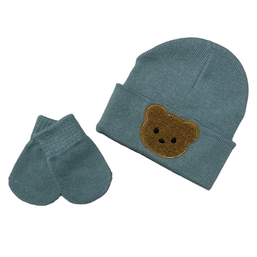 Little Brown Bear Baby Bear Beanie Hat & Mittens- Green