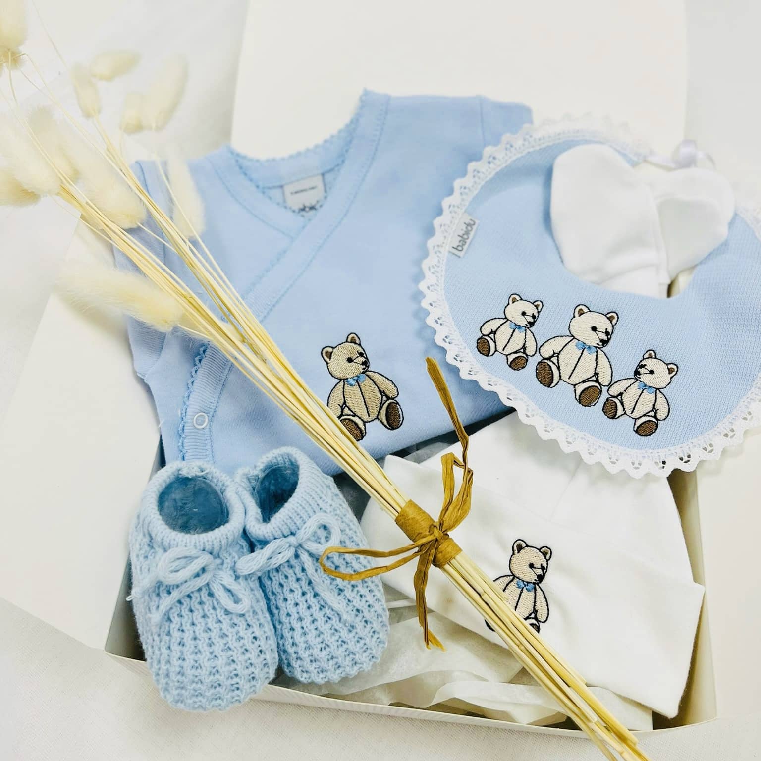 Little Brown Bear Baby Boy 3 Bear Gift Set - Blue Vest