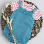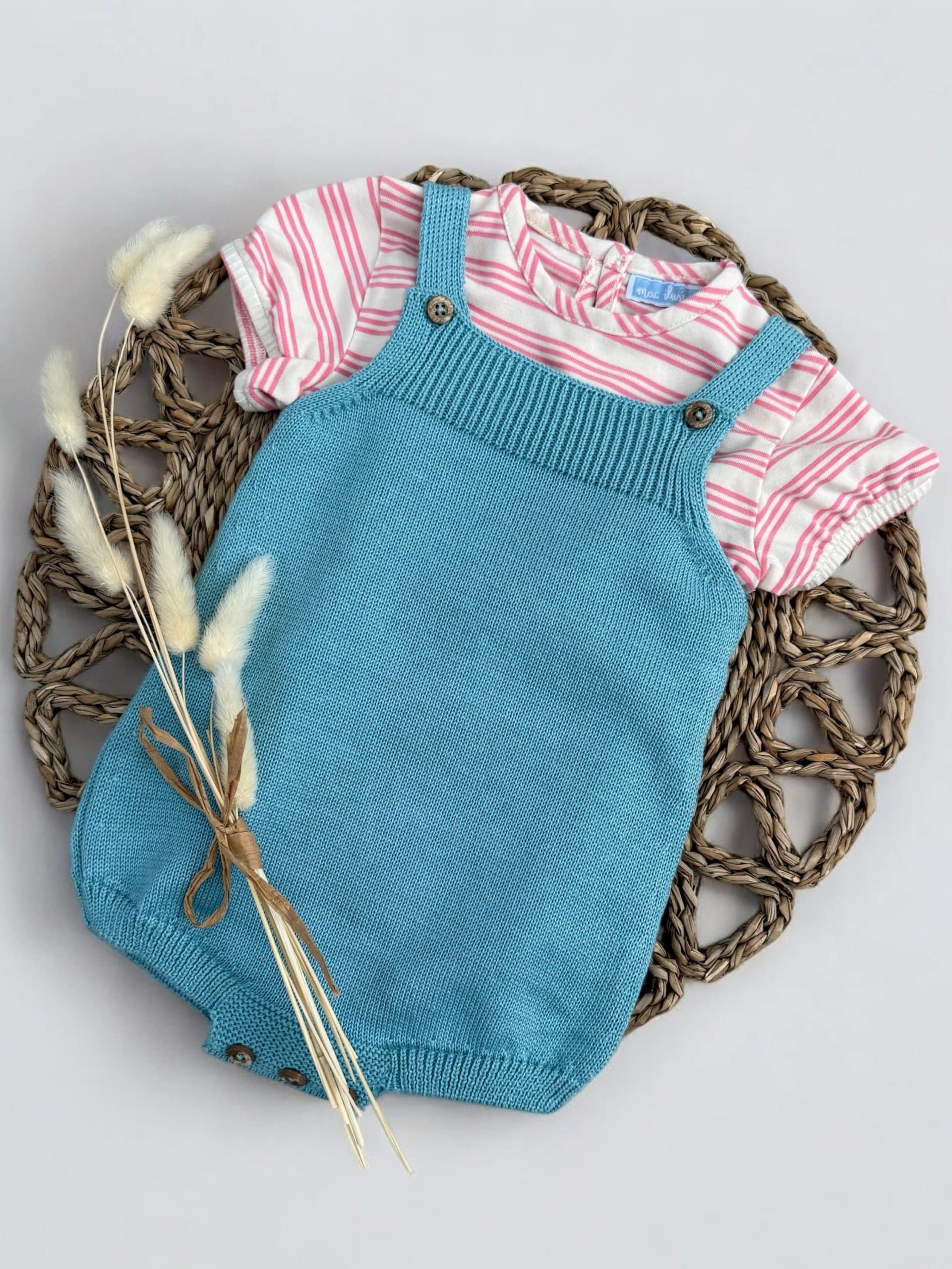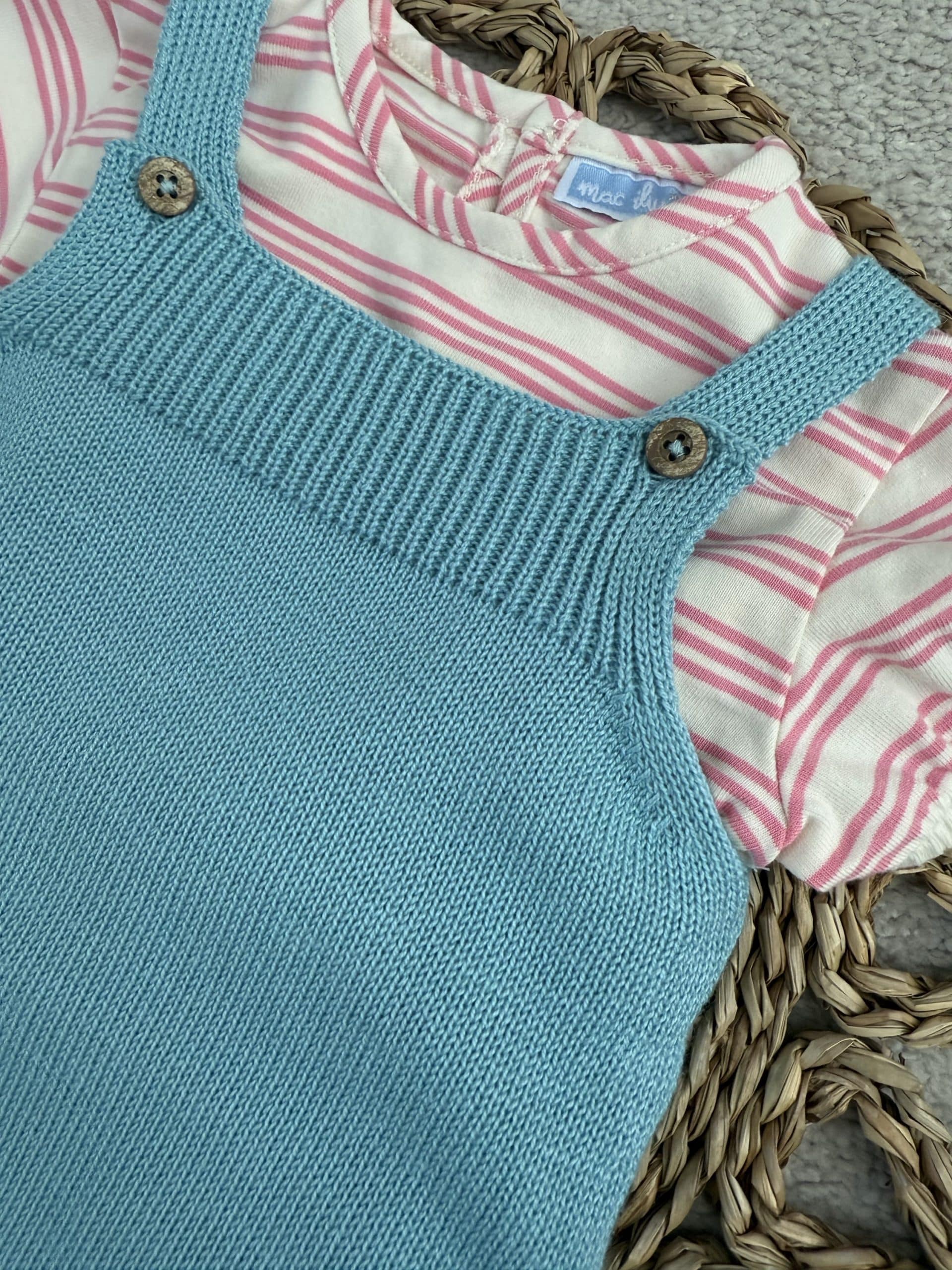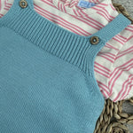 Baby's pin stripe cotton top and knitted romper from mac ilusion brand, fastener underneath with buttons.