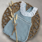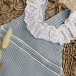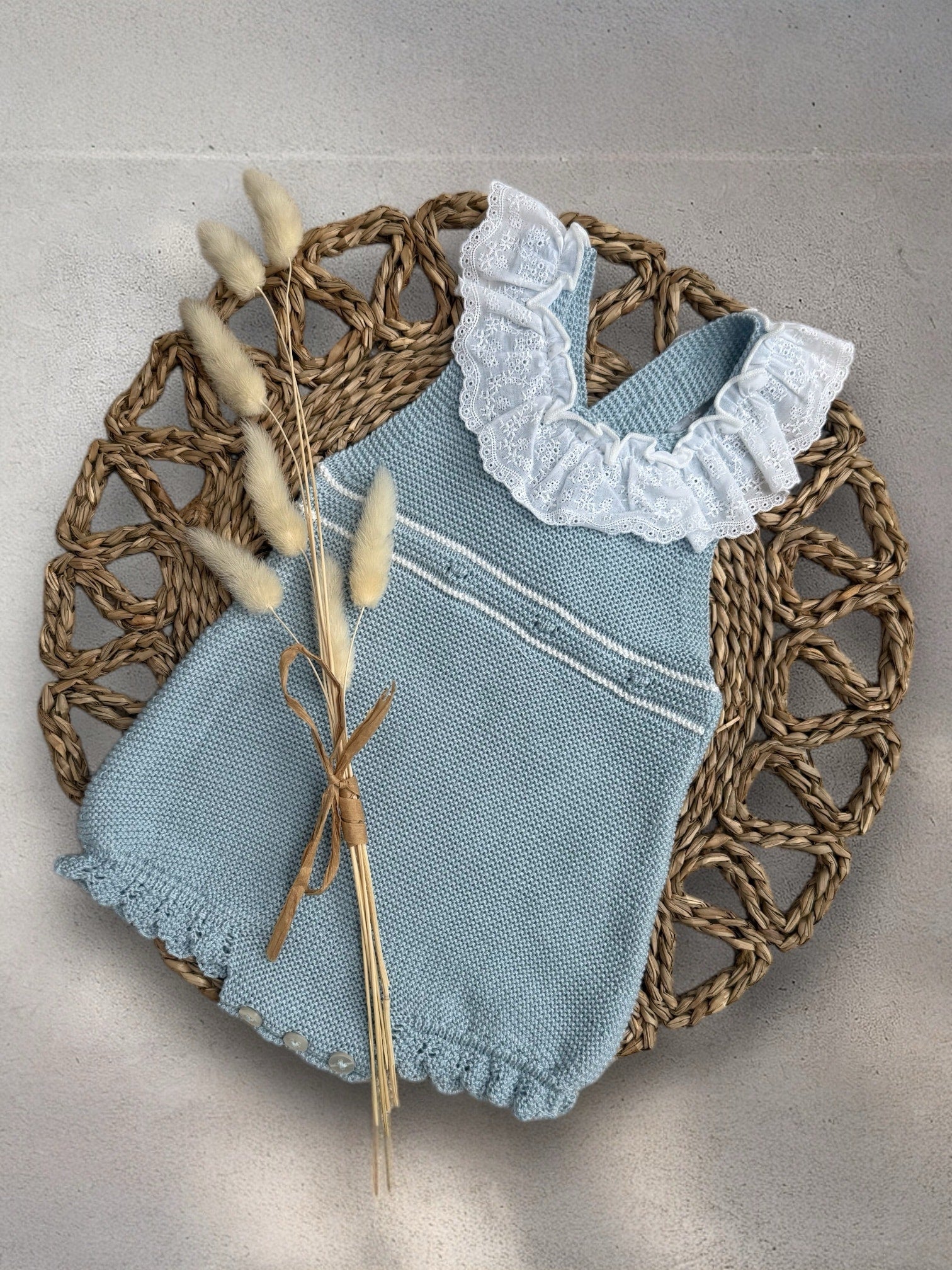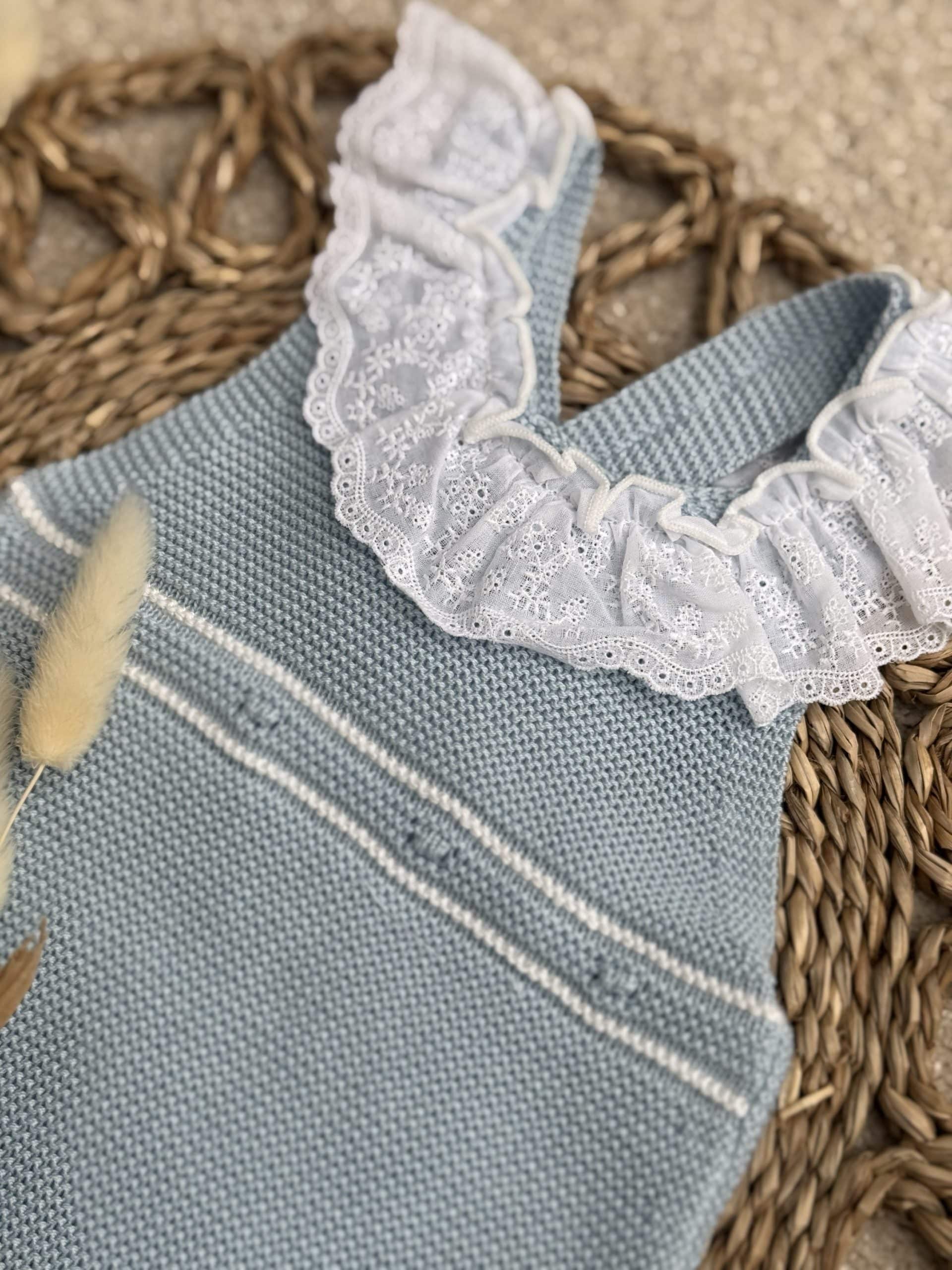 Transform your little one's summer wardrobe with the Mac Ilusion girls Blue knitted romper with a beautiful frill around the top 1 month. This delightful ensemble, now available for immediate delivery, is perfect for warm days and showcases a stylish design.
