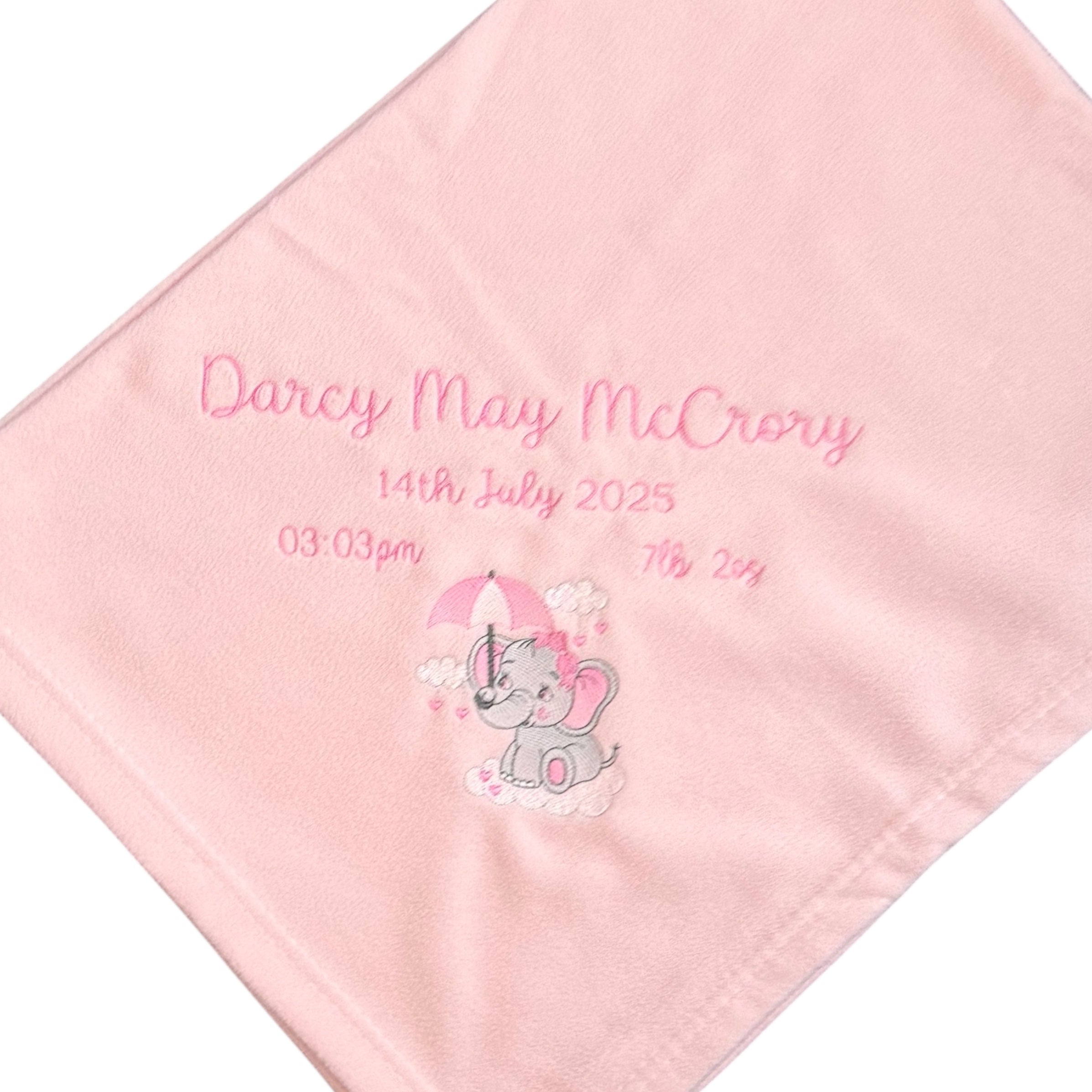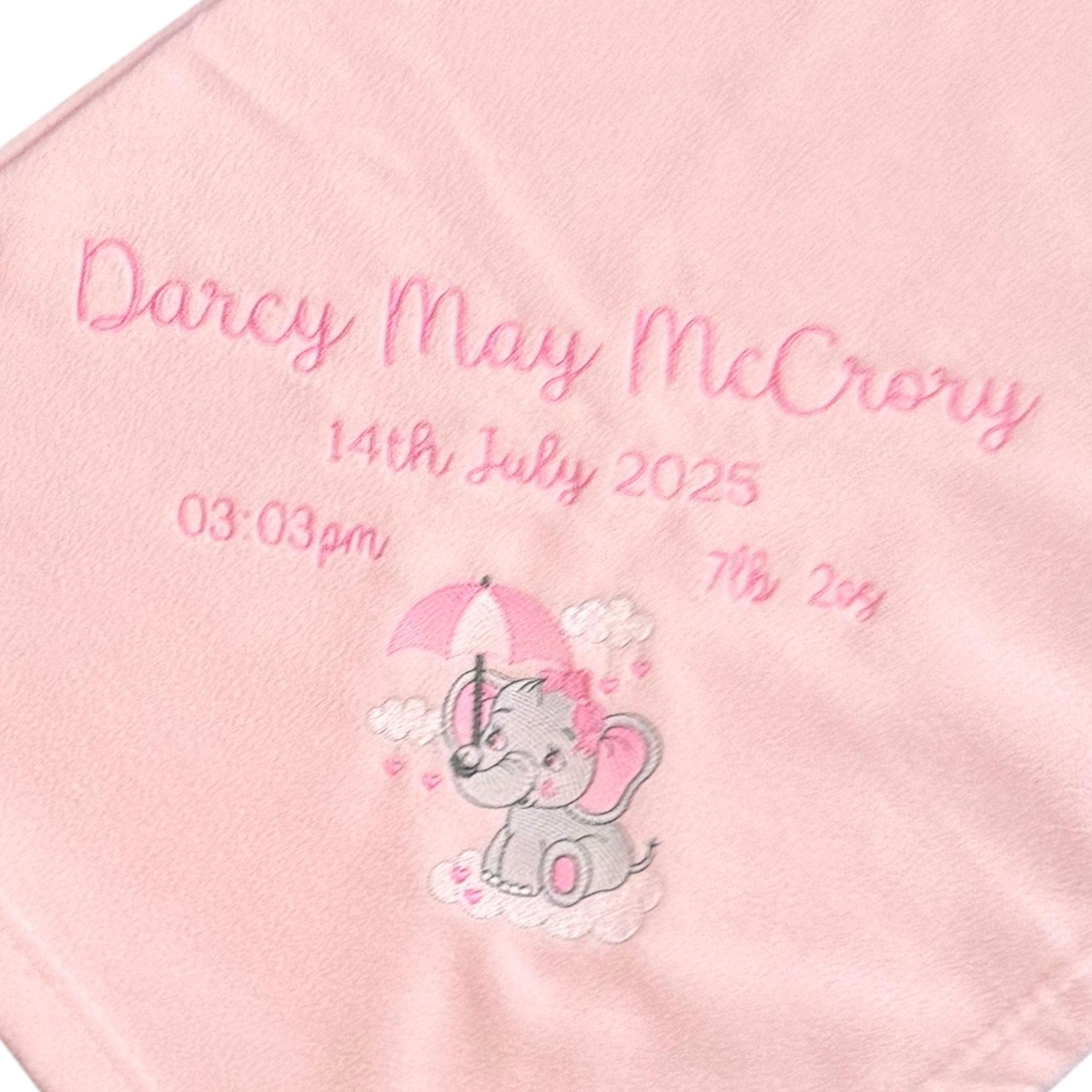 Featuring a sweet elephant design with delicate pink details, this personalised baby blanket is ideal for baby showers, newborn presents, or a special gift for new parents. Not only is it soft and cozy for baby snuggles, but it’s also a beautiful way to remember their very first moments.