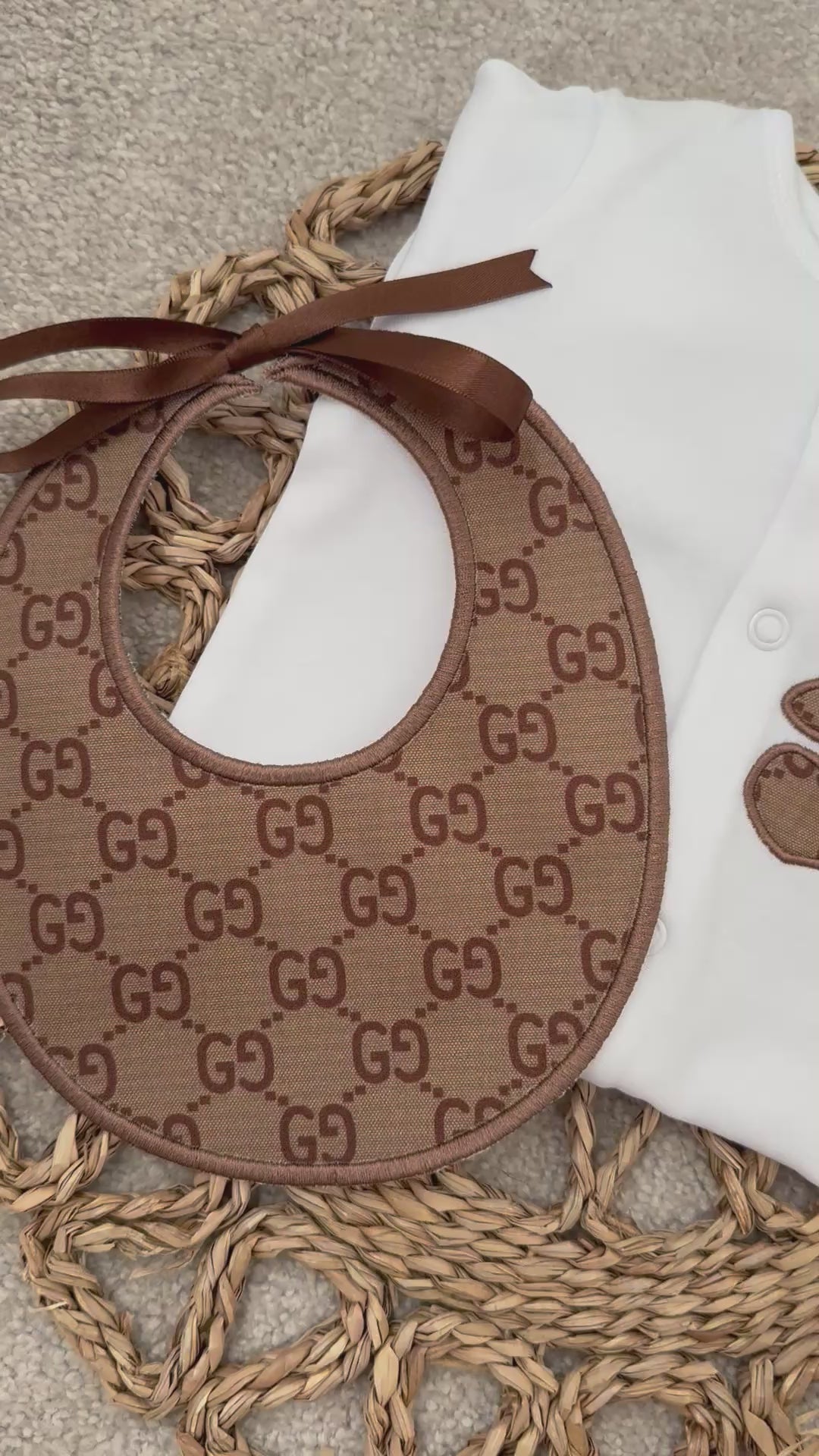 Each piece is carefully handmade with attention to detail, featuring a soft-touch finish and premium fabrics that are gentle against baby’s skin. The coordinating bib completes the look, making this set perfect for special occasions, gifting, or those everyday luxury moments.