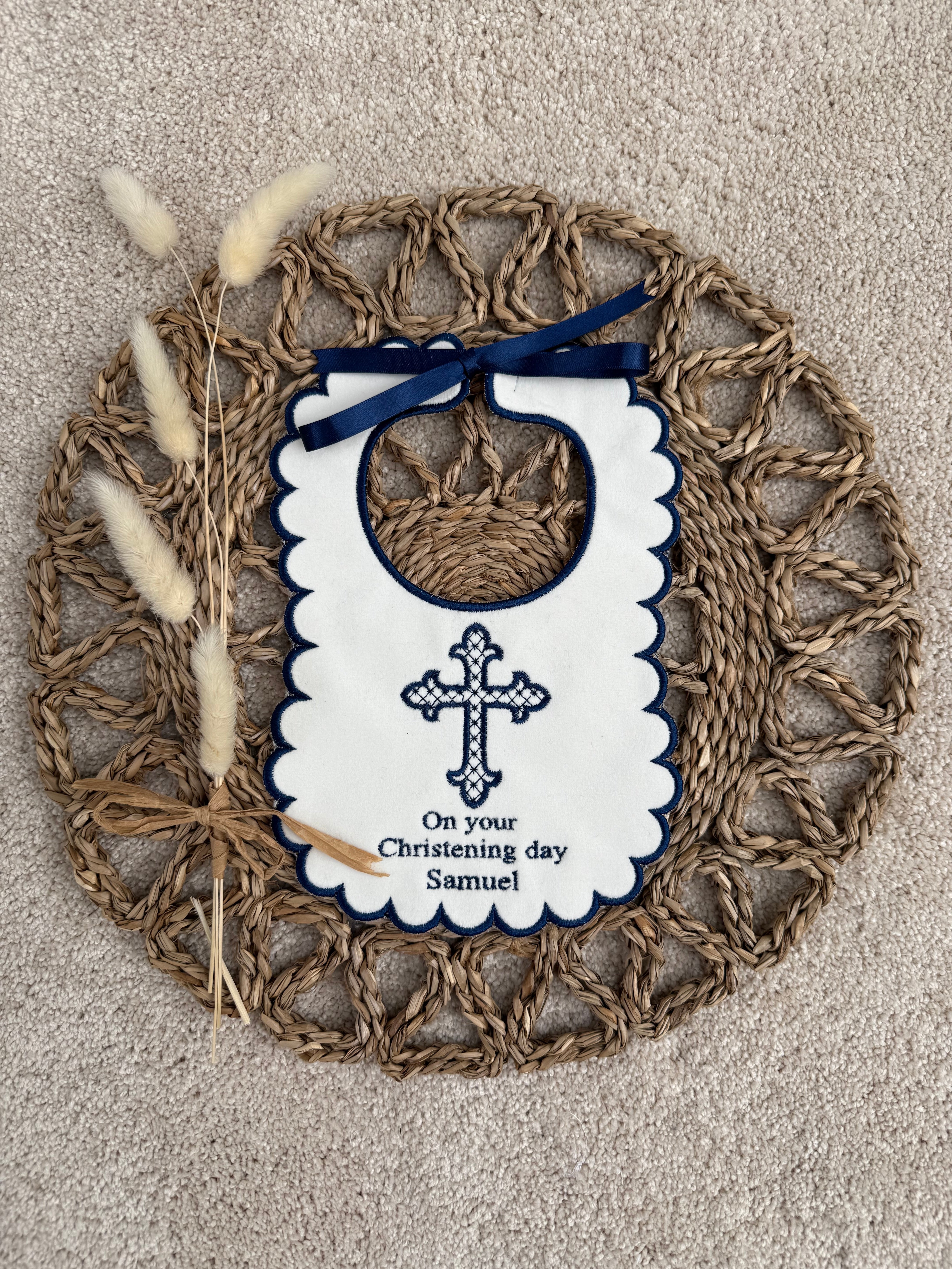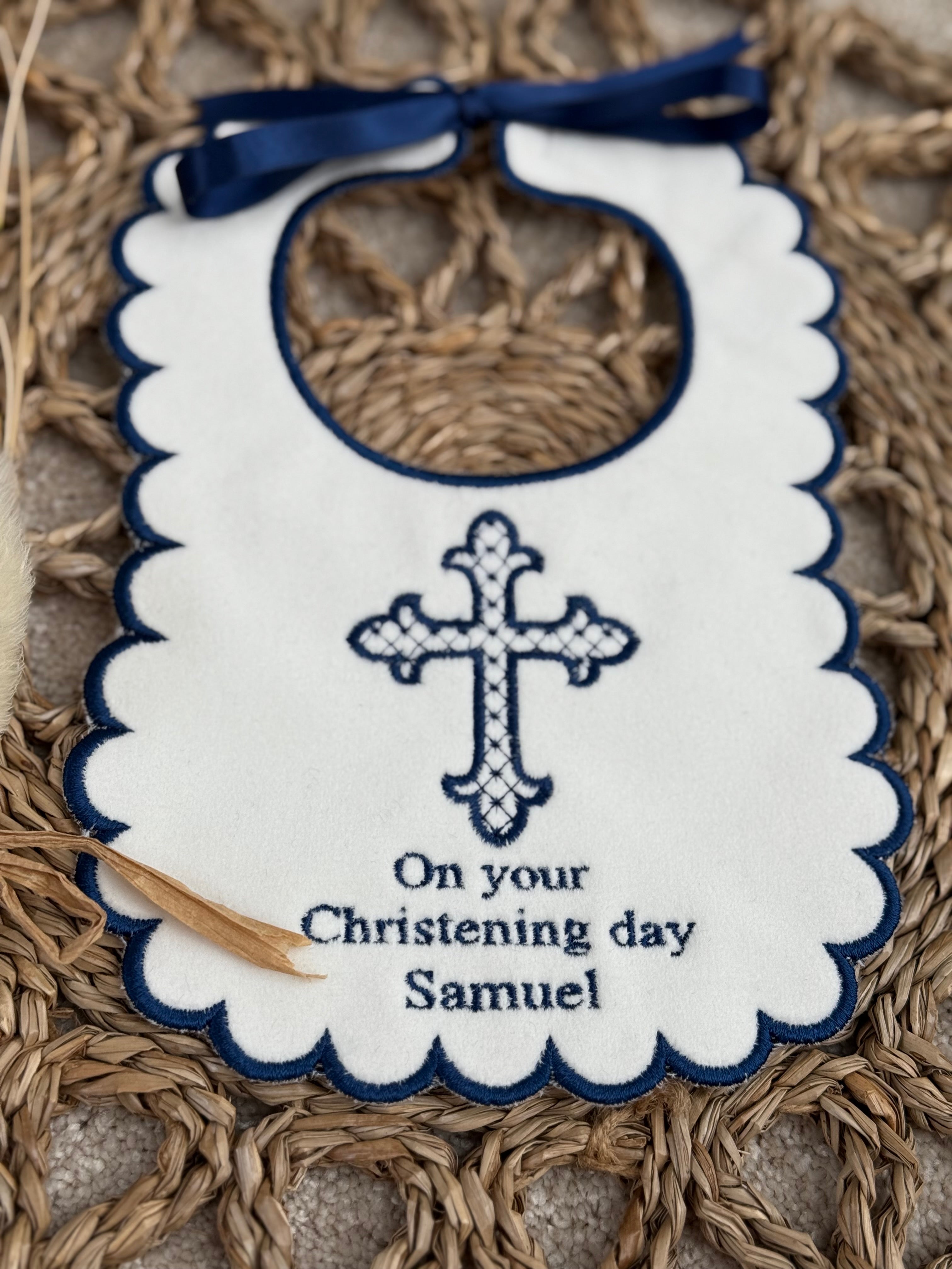 Baby's Personalised Handmade Christening Navy Bib