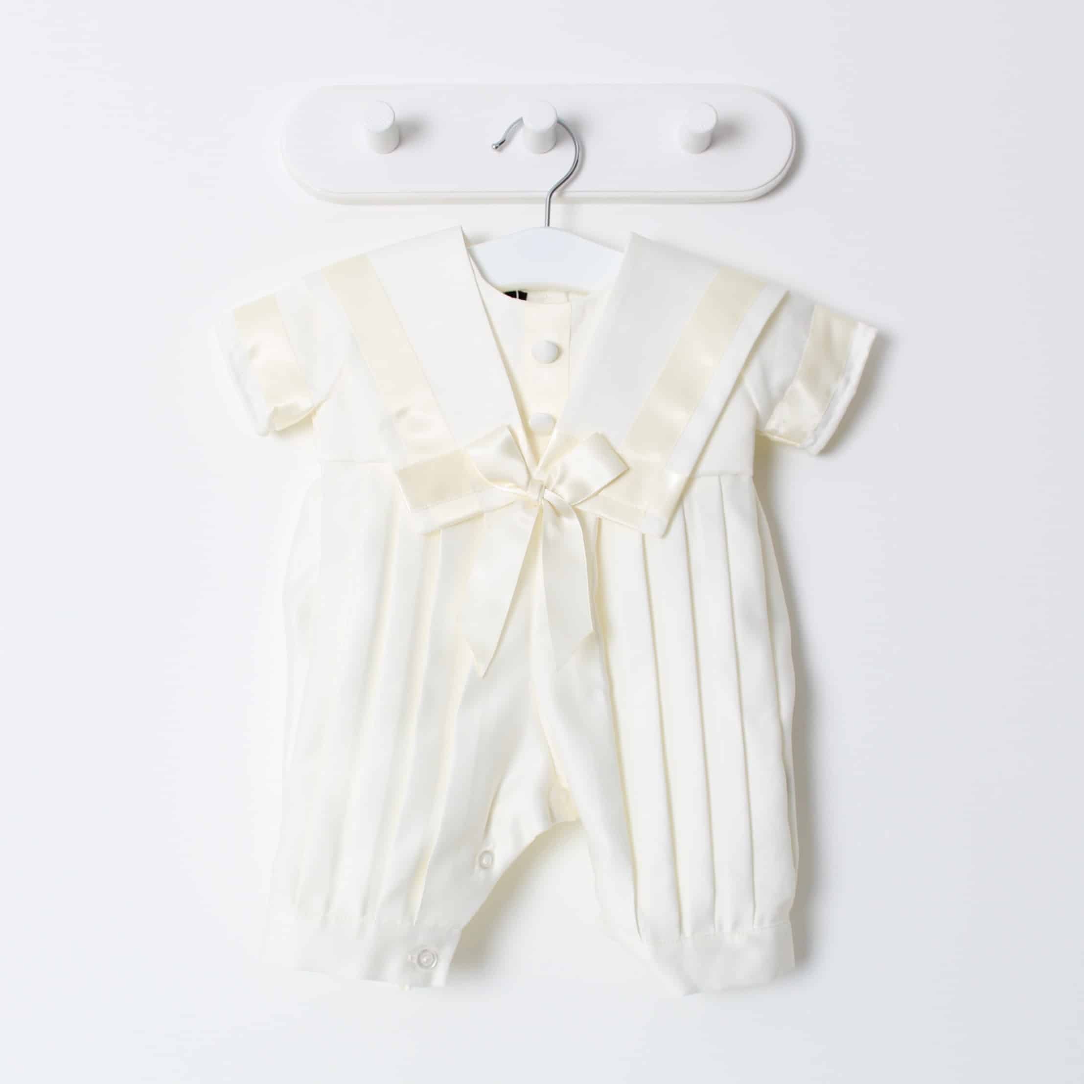 Baby boys ivory sailor style christening romper & hat, the perfect christening outfit for your baby boys special day.