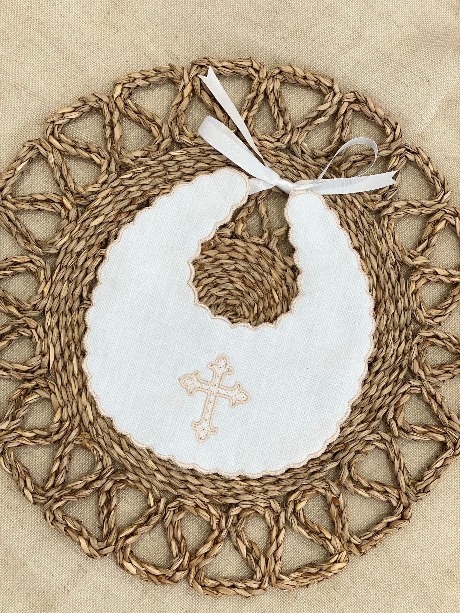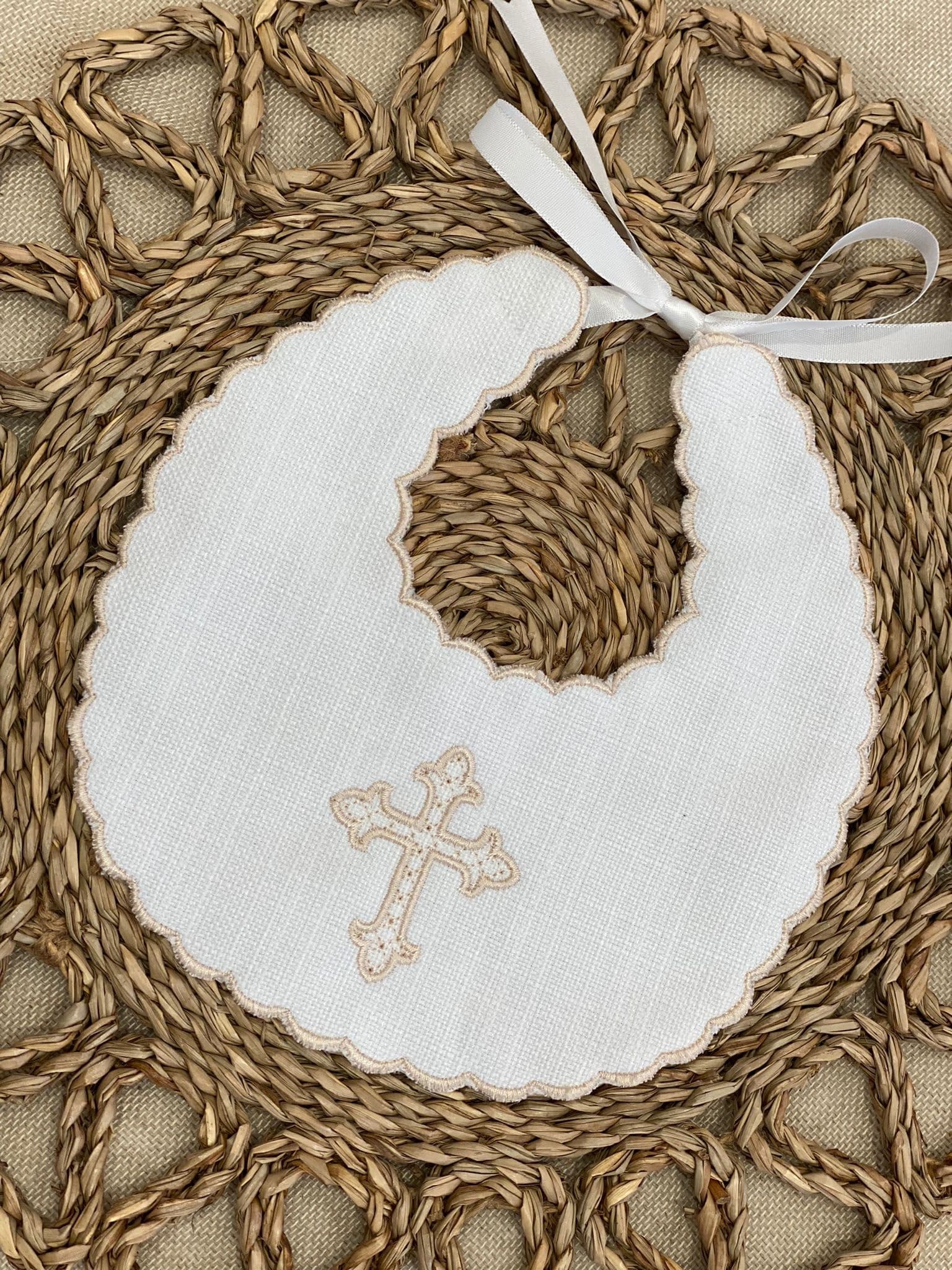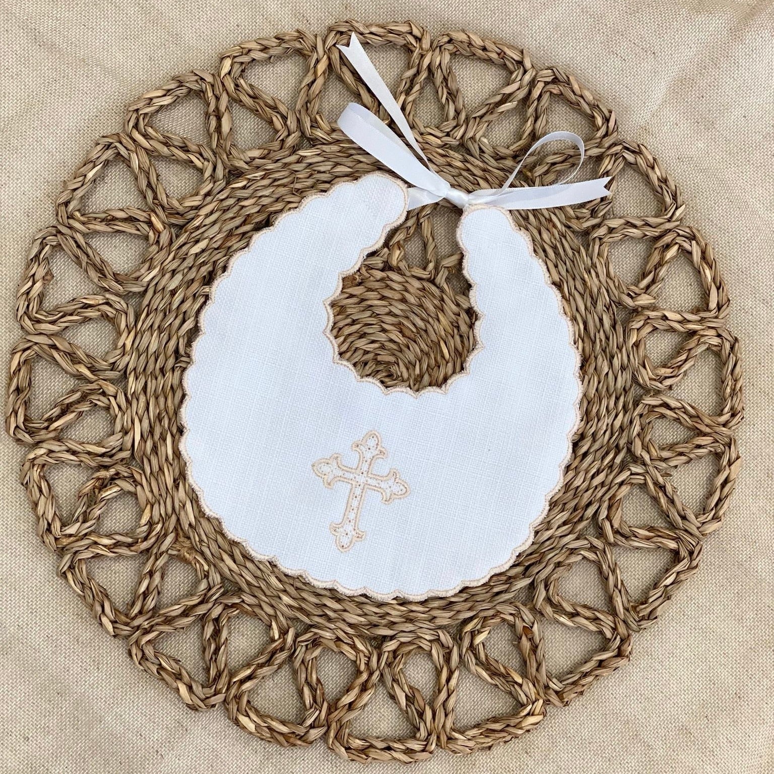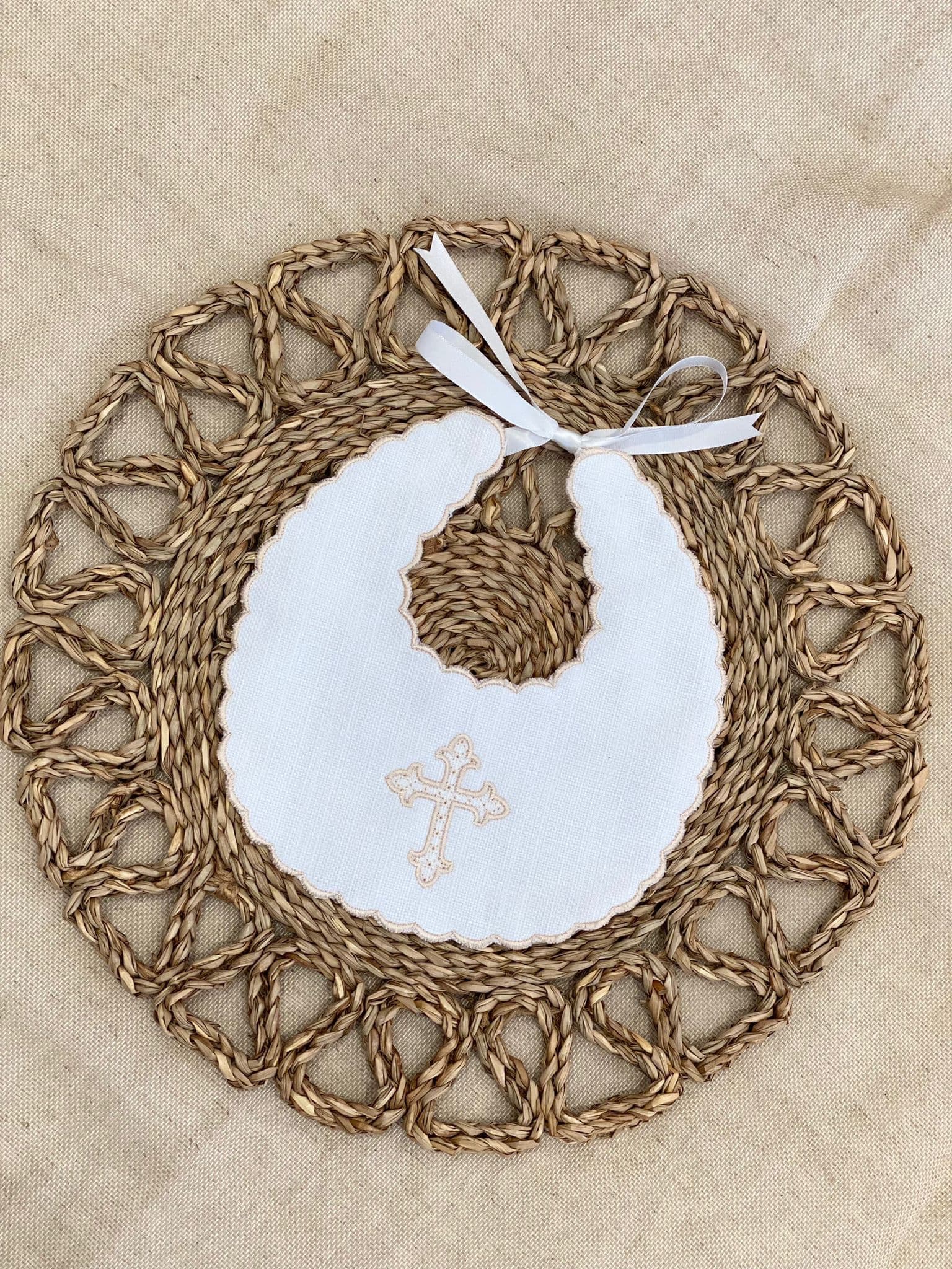 Whether you're looking for a stylish accessory or want to gift something special to a loved one's baby, our Handmade Christening Bib fits the bill perfectly. So why wait? Place your order now and make your baby's christening ceremony even more memorable!