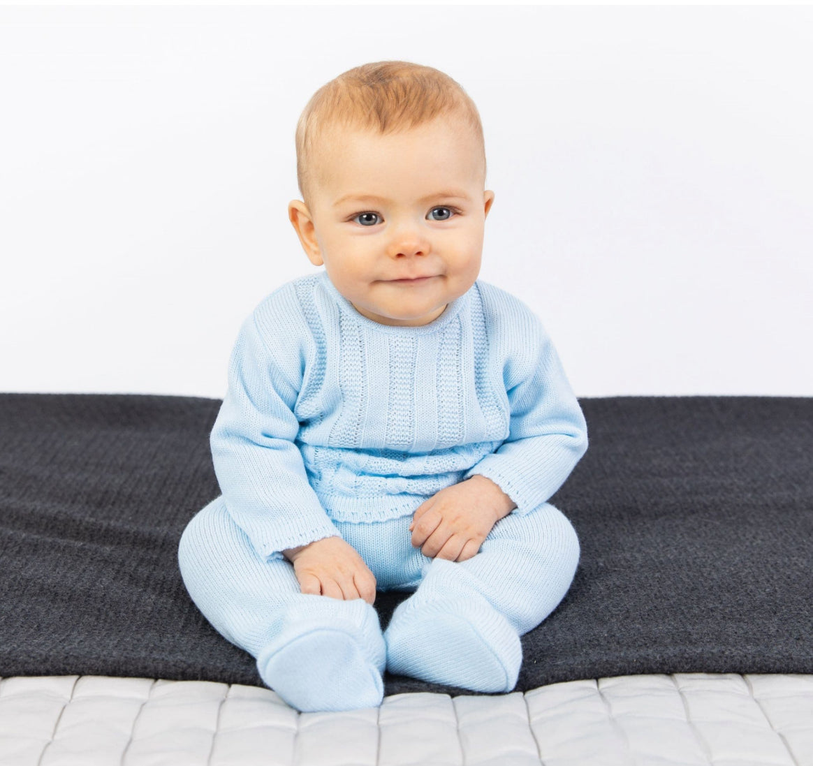 Baby Boy's Baby Blue Cable Spanish Knitted Outfit