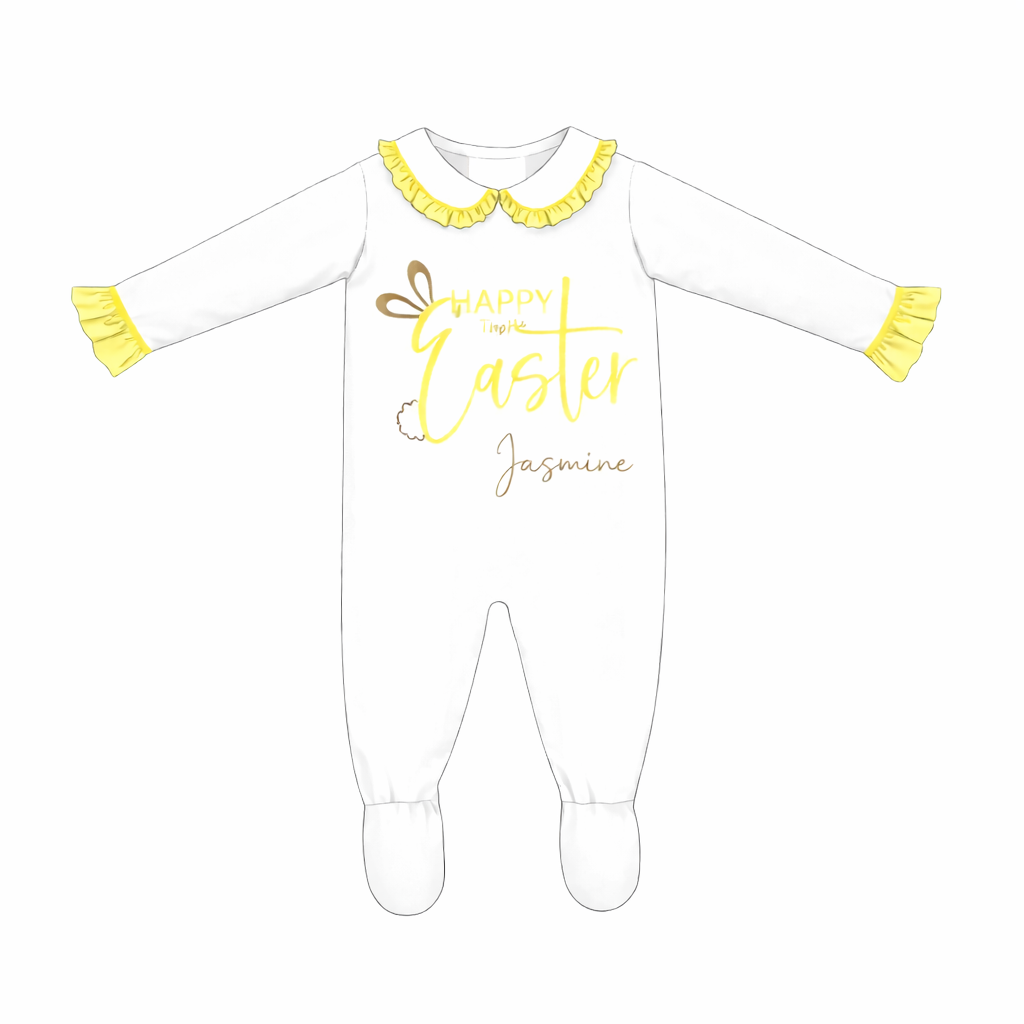 Easter Bunny Lemon Frill Trim Personalised Sleepsuit – Girls