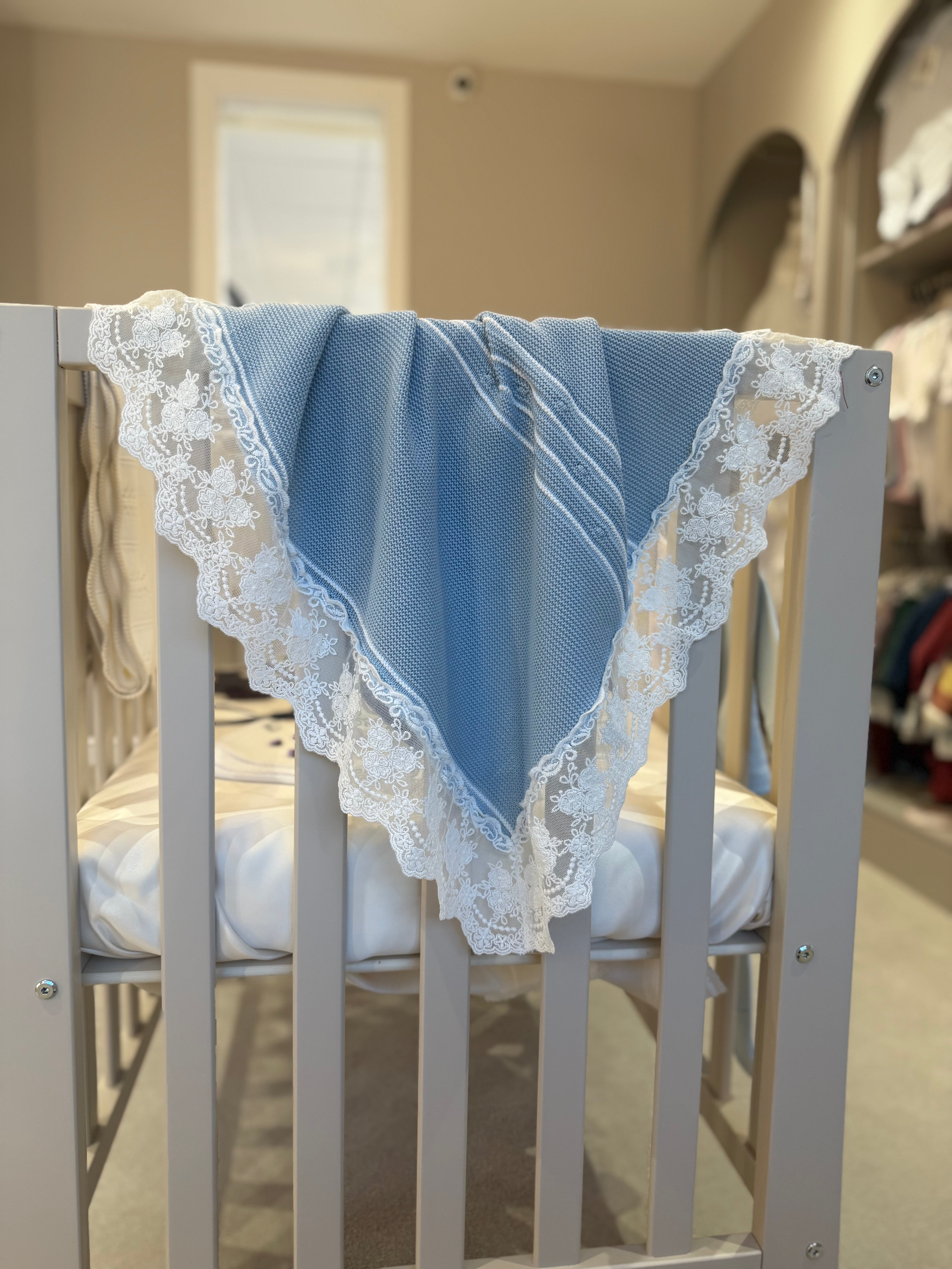 Each piece is designed with love and care, creating a gentle touch against baby’s delicate skin. The intricate lace border adds a touch of luxury, making this blanket a beautiful heirloom to treasure for years to come.