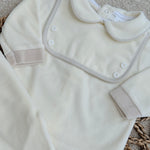 Crafted from sumptuously soft velour, this set is gentle against delicate skin while providing a warm and snug fit. The neutral tones and classic design make it perfect for both everyday wear and special occasions.