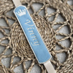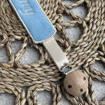 Keep their dummy safe with our personalised beautiful Velvet handmade dummy holder. These clever clips attach to your little one’s cute clothes, allowing you to fasten their favourite dummy safely to the silicone ring. The cord strap keeps their dummy within easy reach and stops it getting dropped or dirty when out and about. For a fun gift made for their travels, personalise this clever clip with a child’s name.