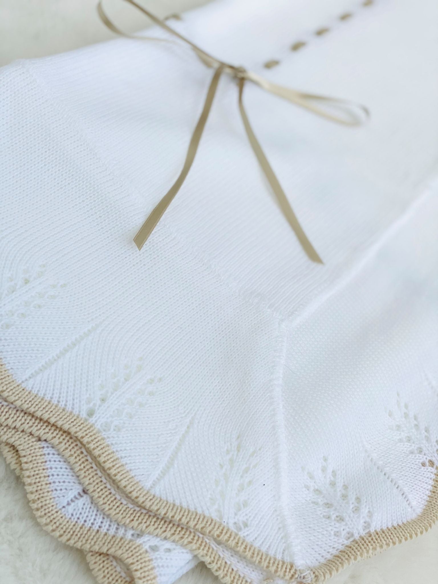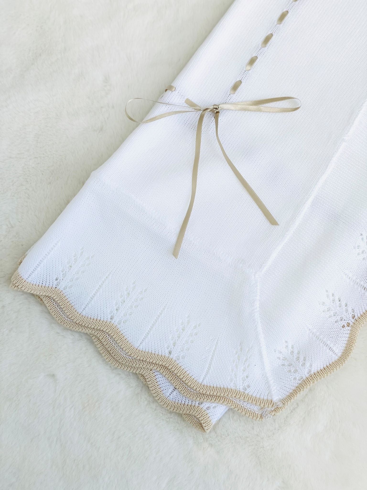 Perfect Little Thing Baby's First Shawl With Beige Trim