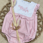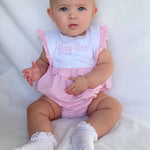Designed for convenience, this romper features back buttons for easy dressing and bottom snaps for quick nappy changes. Whether for everyday wear, a special occasion, or a thoughtful gift, this romper is both adorable and practical.
