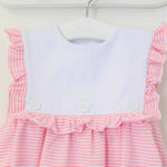 ✔ Charming design: Pinstripe print with a delicate white frill panel