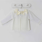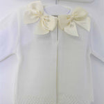 Girls knitted cardigan with 2 big satin bows on the front, this is perfect to go over anything. Available in lots of different colours.