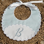 This is a beautiful unique handmade bib, with a beautiful scallop edge design.