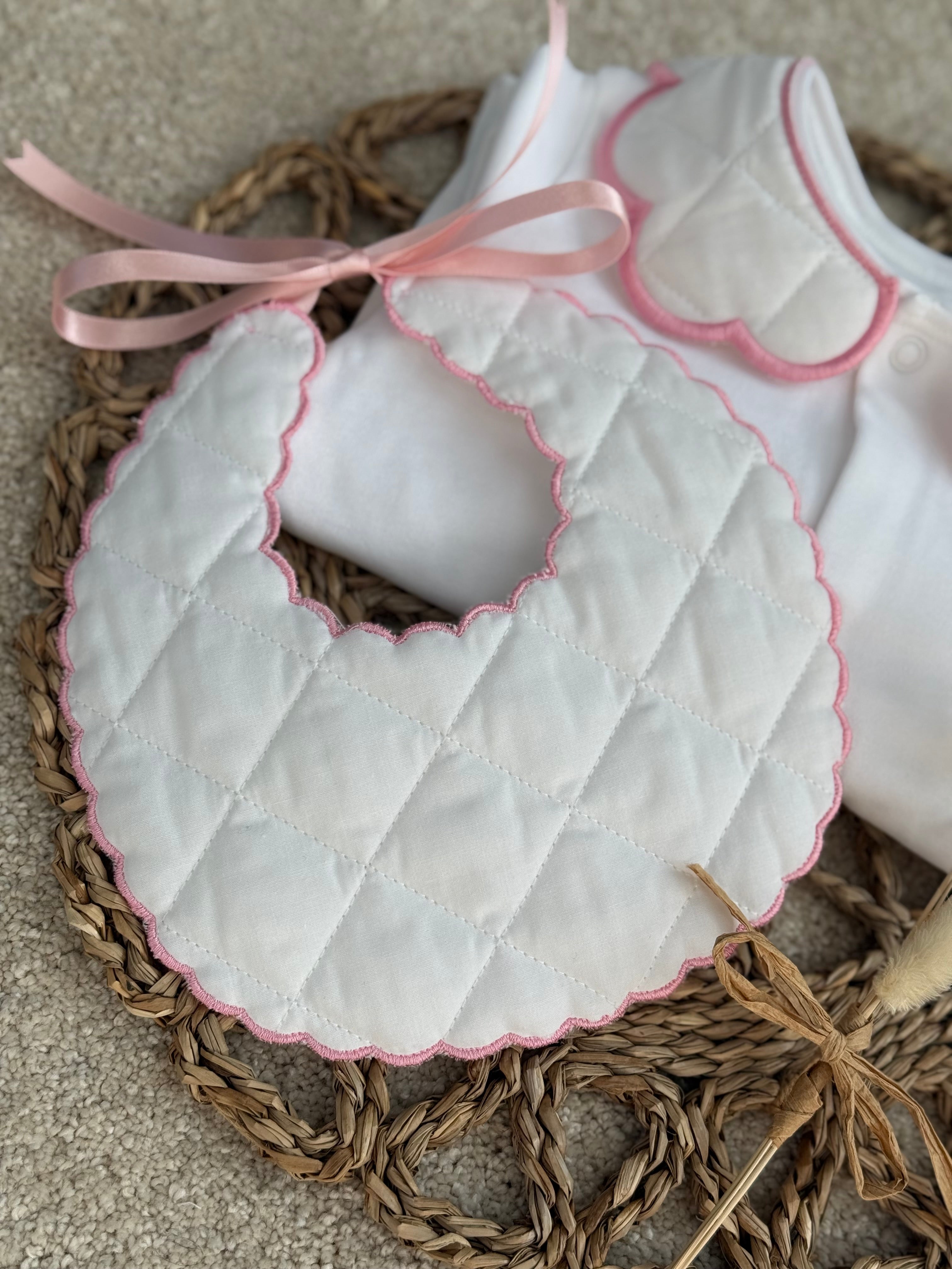 Baby’s Unisex Quilted Handmade Sleepsuit, Bib