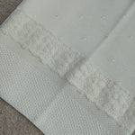 Wrap your little one in elegance and comfort with this exquisite white knitted baby shawl. Expertly crafted from soft, breathable knit, it features delicate raised dot detailing throughout for a subtle touch of charm. The edge is adorned with intricate lace trim, adding a classic and timeless finish. Perfect for christenings, special occasions, or as a thoughtful gift, this shawl is a beautiful keepsake piece for any newborn.