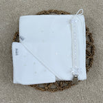 - 1 x Matching Muslin/Burp Cloth – Gentle on baby’s skin and versatile for everyday use, this matching muslin cloth features the same elegant embroidery and trim for a coordinated look.