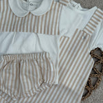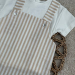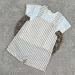 Add effortless charm to your little one’s wardrobe with these beautifully crafted linen-blend dungarees. Featuring a soft beige and white vertical stripe pattern, this timeless piece is perfect for warm-weather outings and special occasions. Designed with adjustable shoulder straps and easy popper fastenings at the leg, they offer both style and practicality.