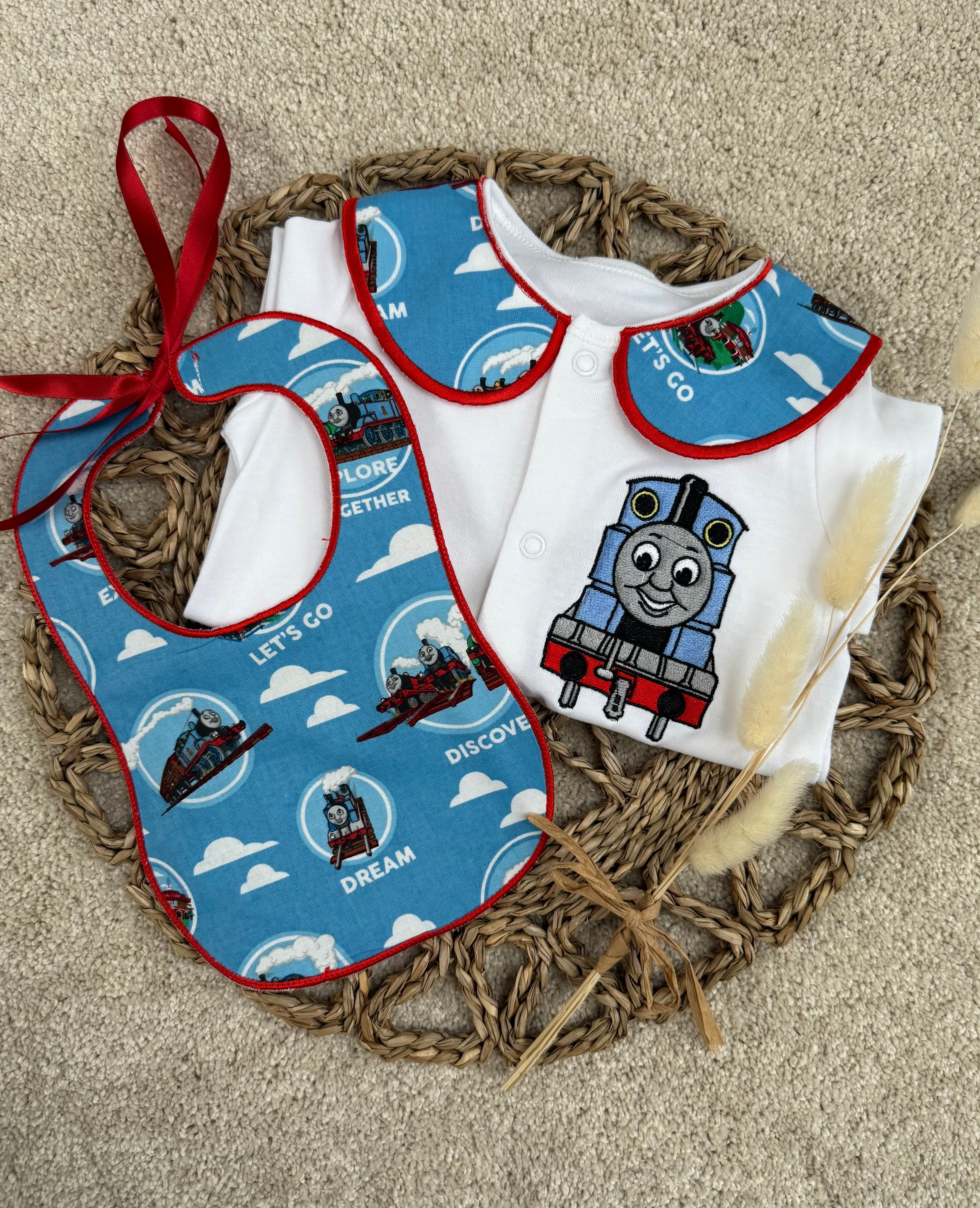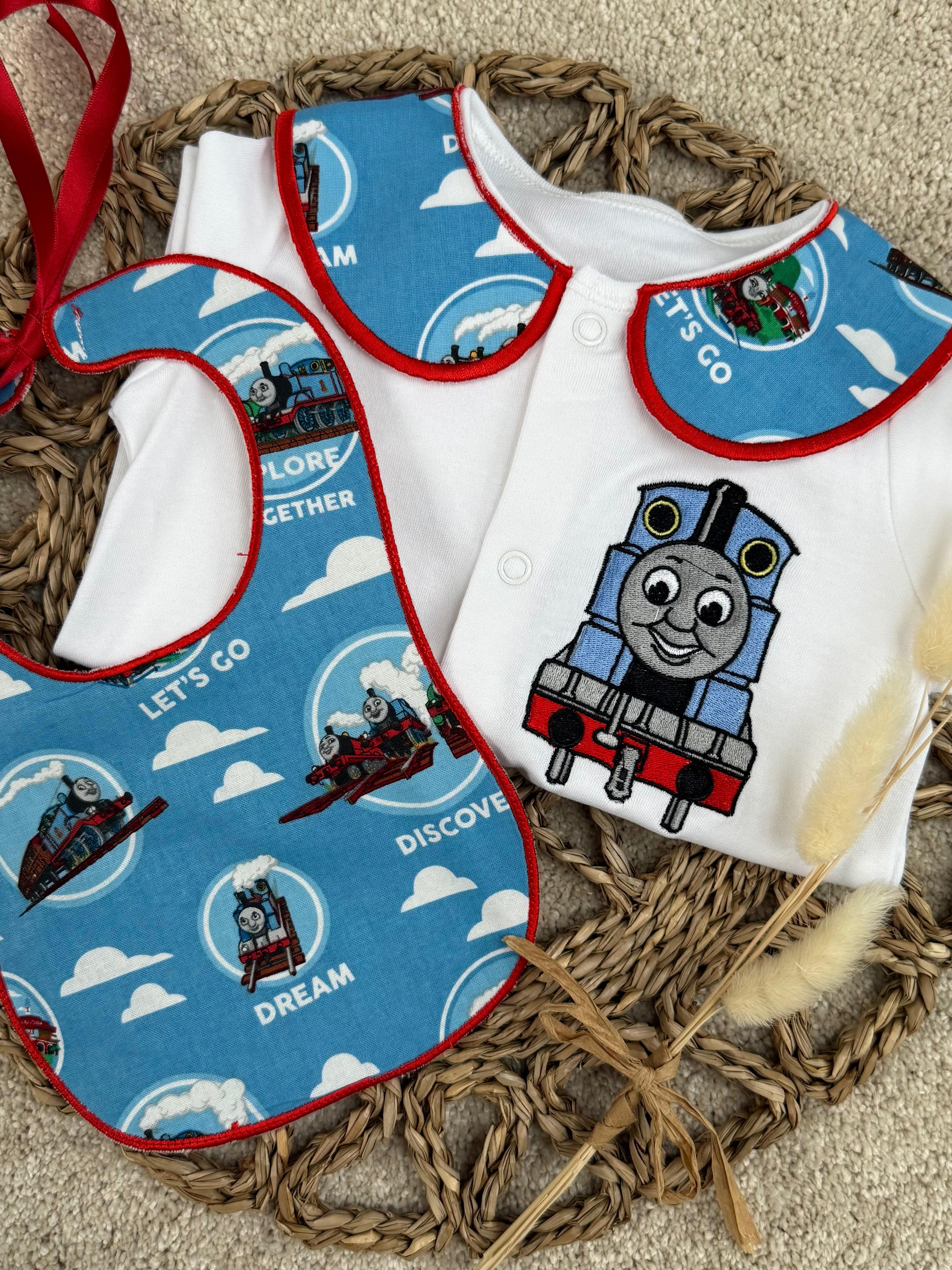 Boys Thomas The Tank Engine Handmade Sleepsuit And Bib