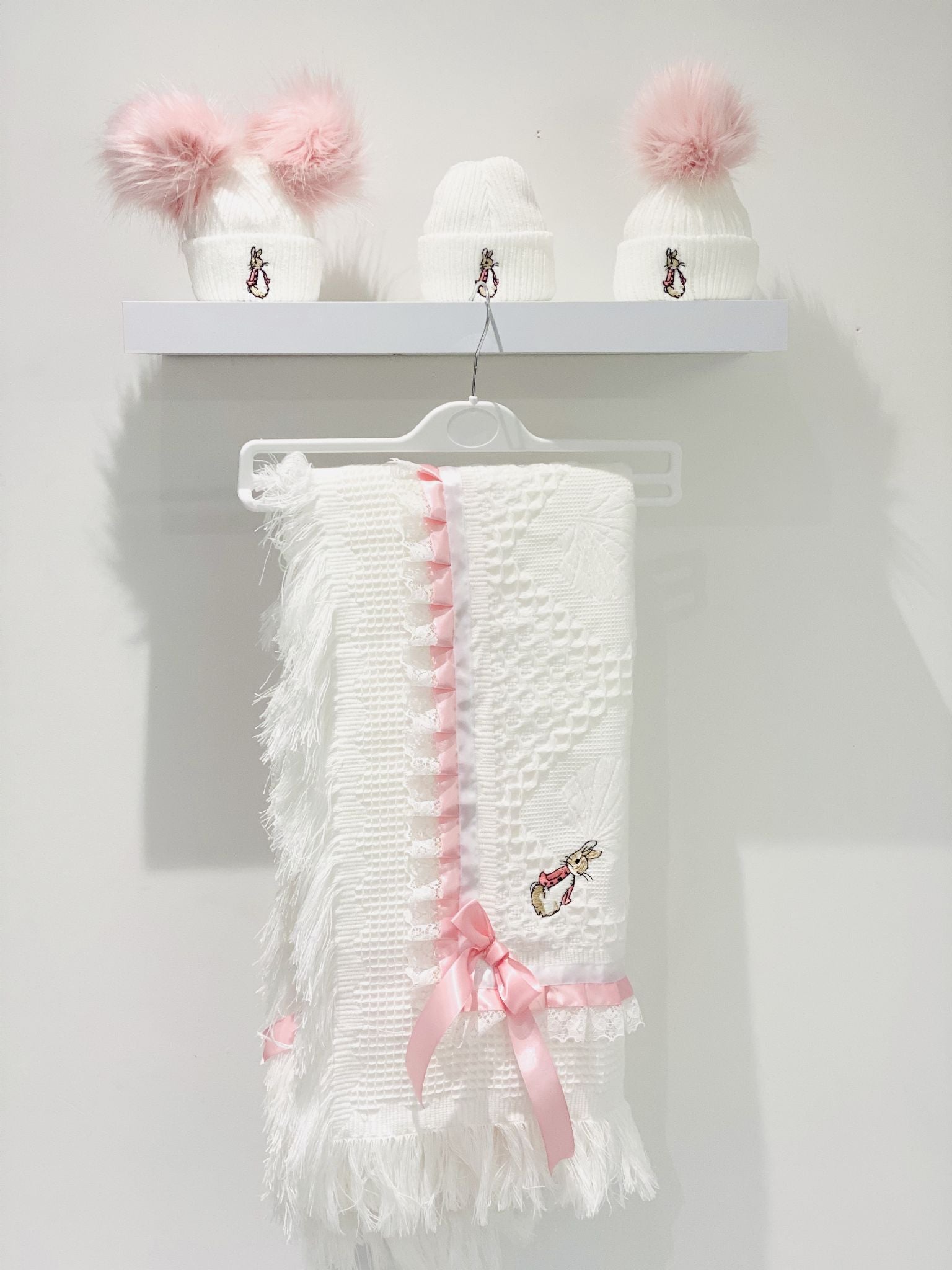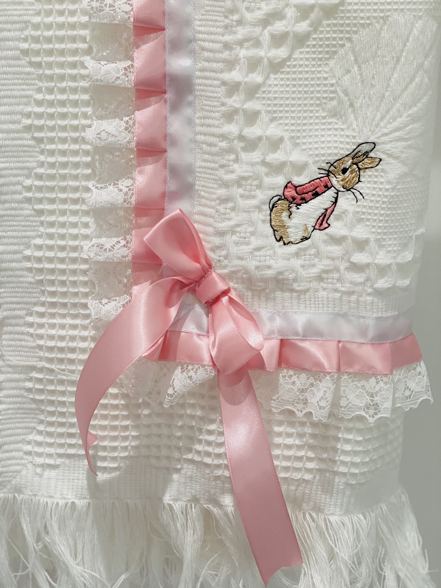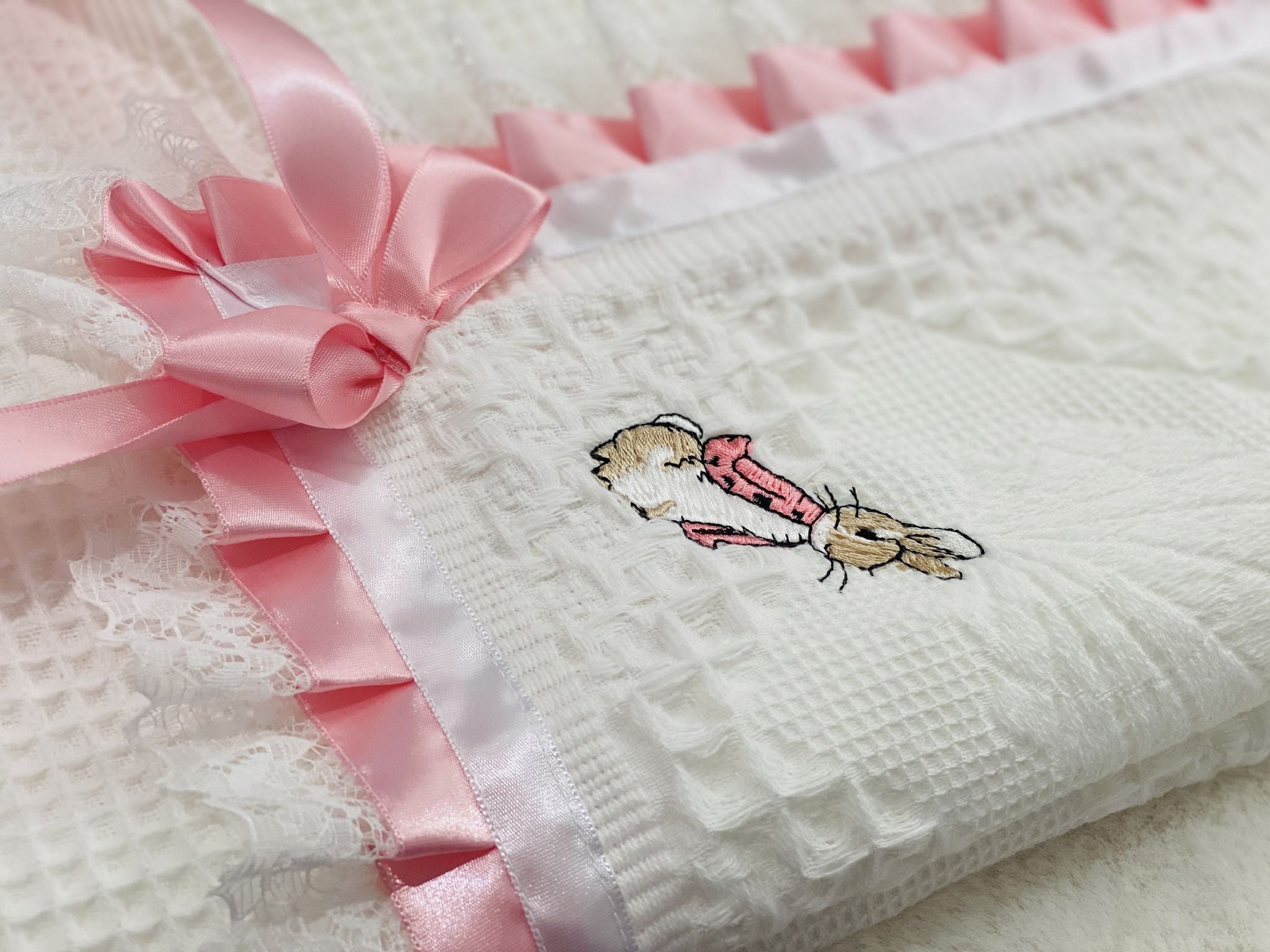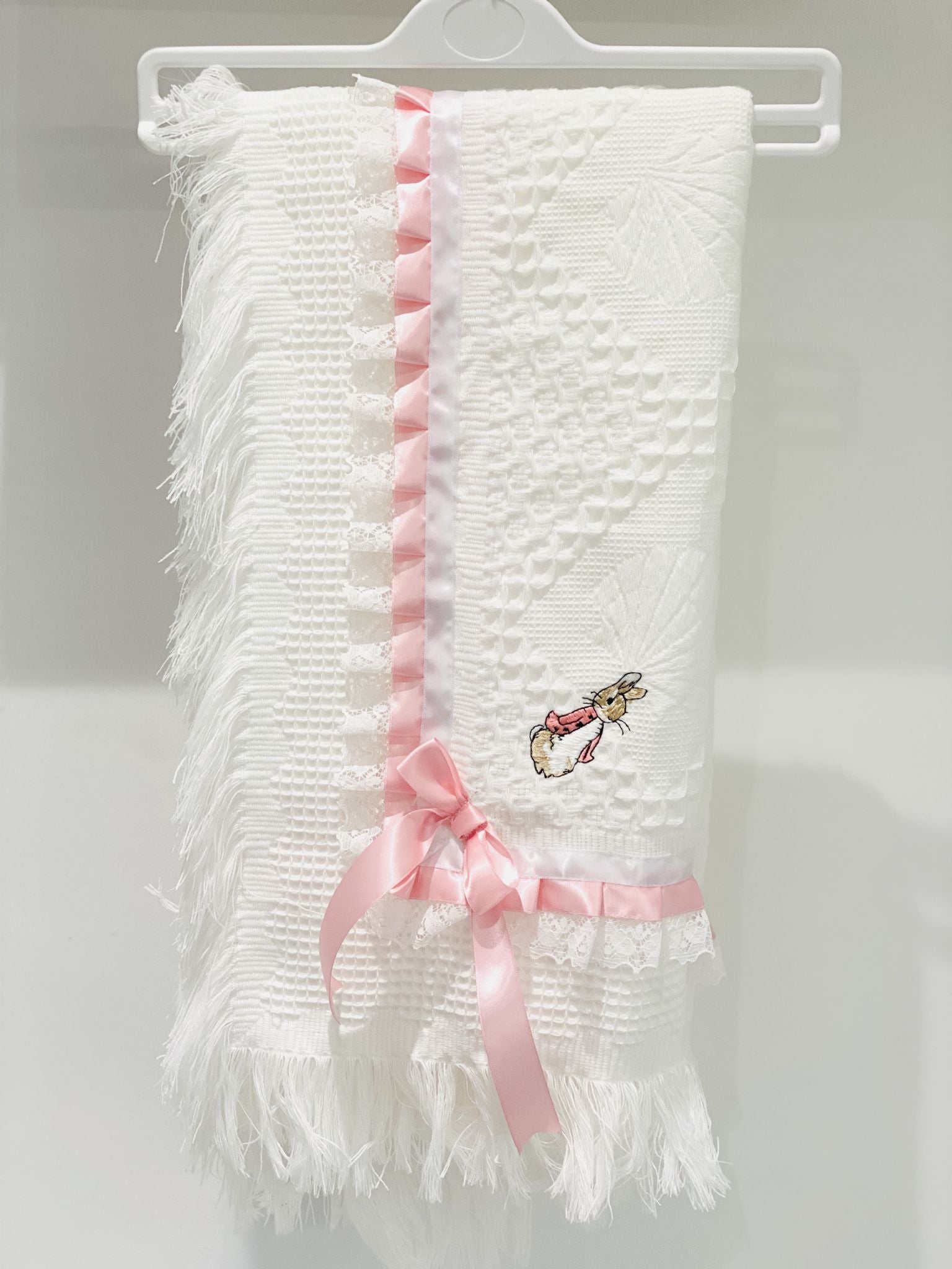 Perfect Little Thing baby shawl comes in a varied design with a lace ribbon and frill edge.