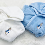 This luxurious personalised white hooded fleece robe is a timeless piece that little ones will adore. With a soft snuggly hood, peter rabbit embroidered on the front, secure waist tie and two large front pockets, little ones will be all set for bedtime, cosy days in and lazy weekend mornings. Personalise this peter dressing gown with the name of a little one for a special gift that will bring them joy every day.