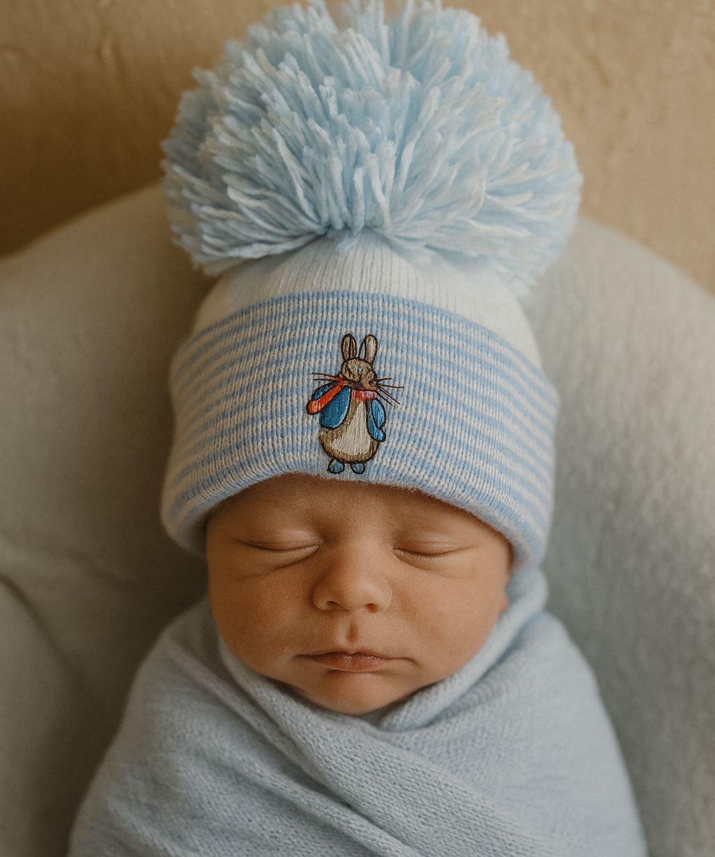 Newborn Peter Rabbit White & Blue Stripe Pom Hat