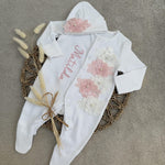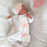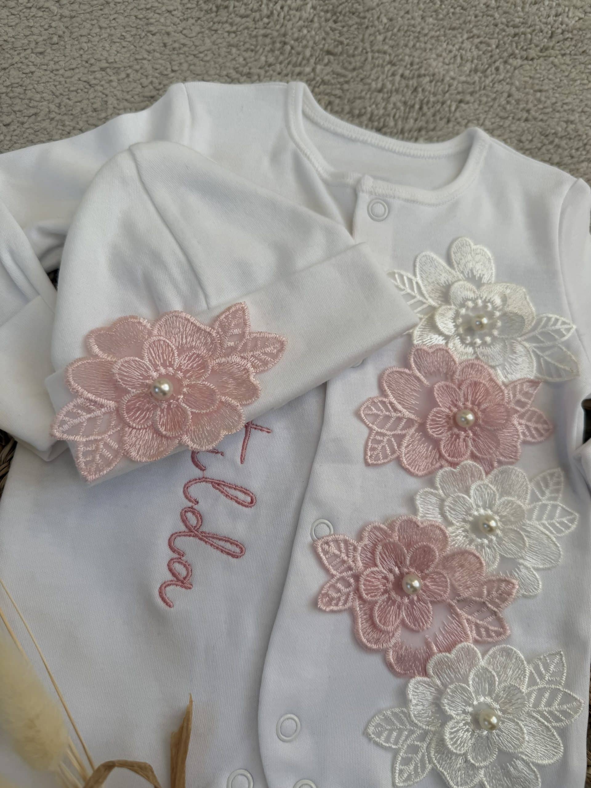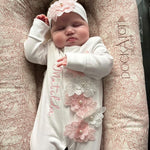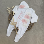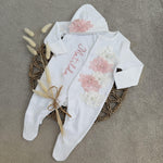 Baby Girls White and Pink Flower Baby Grow With Hat