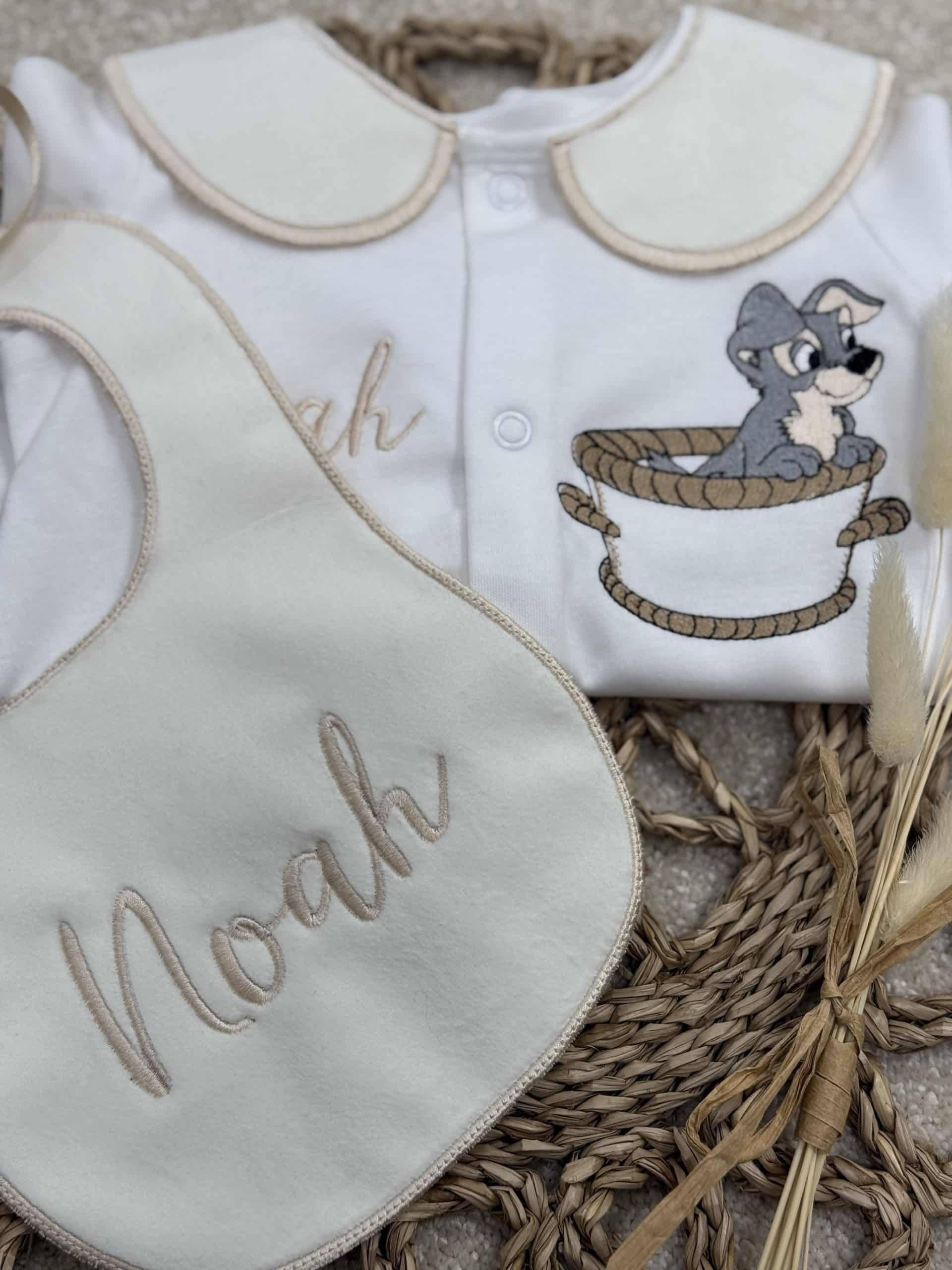 Unisex The Tramp Handmade Sleepsuit And Bib