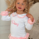 Girls White & Pink Personalised Frilly Pyjamas