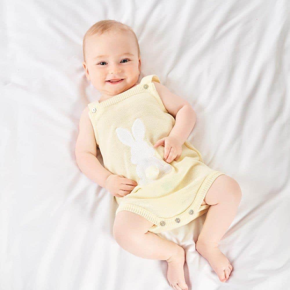 Dandelion Knitted Bunny Dungaree - Lemon Pom