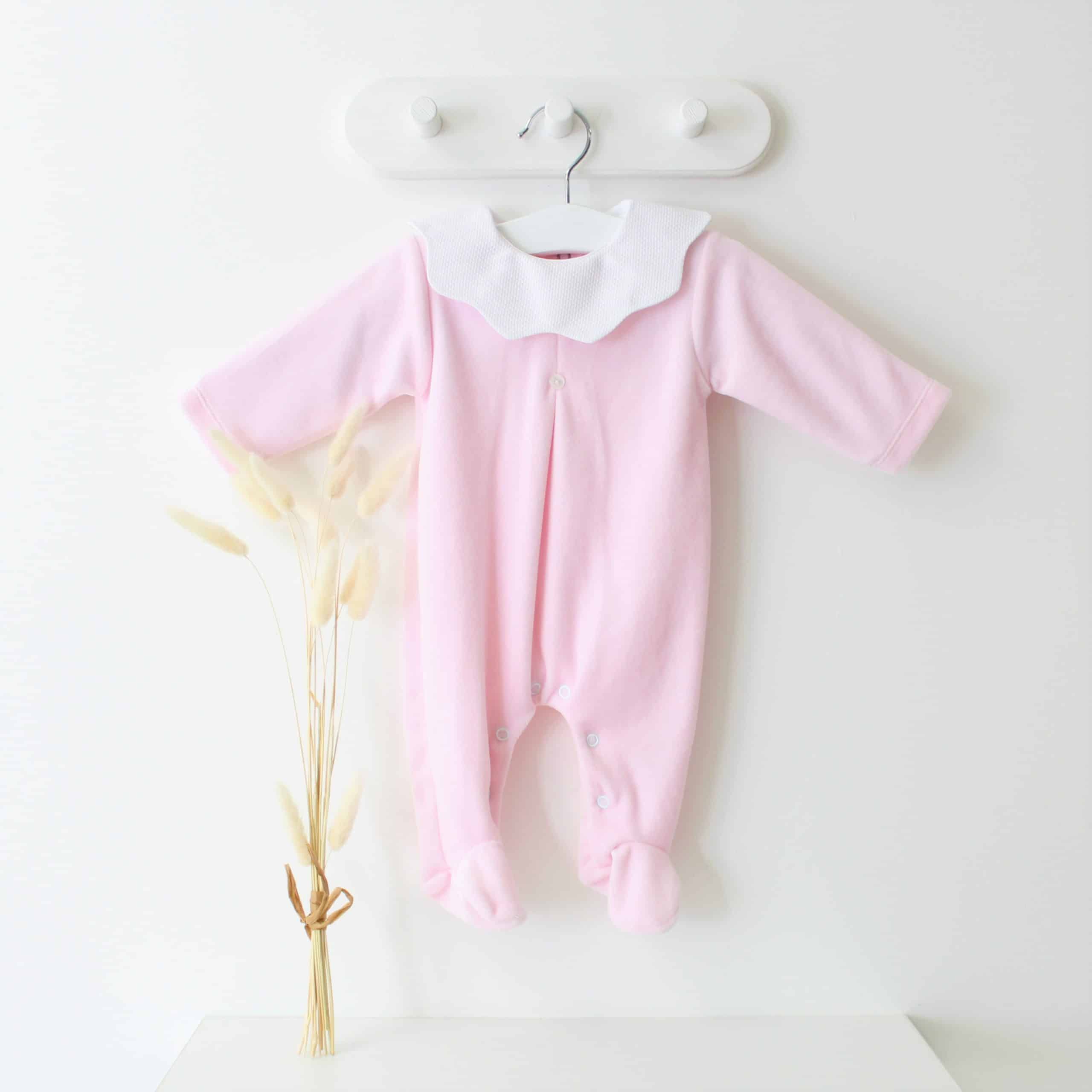 Baby Girls Cloud Collar Velour Romper - Pink