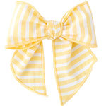 Add the perfect finishing touch to your little one's outfit with this delicate lemon and white seersucker striped hair bow from Calamaro. Crafted from soft, lightweight cotton, it is securely attached to a silver crocodile clip for a comfortable and secure fit. A timeless accessory, perfect for Spring/Summer!